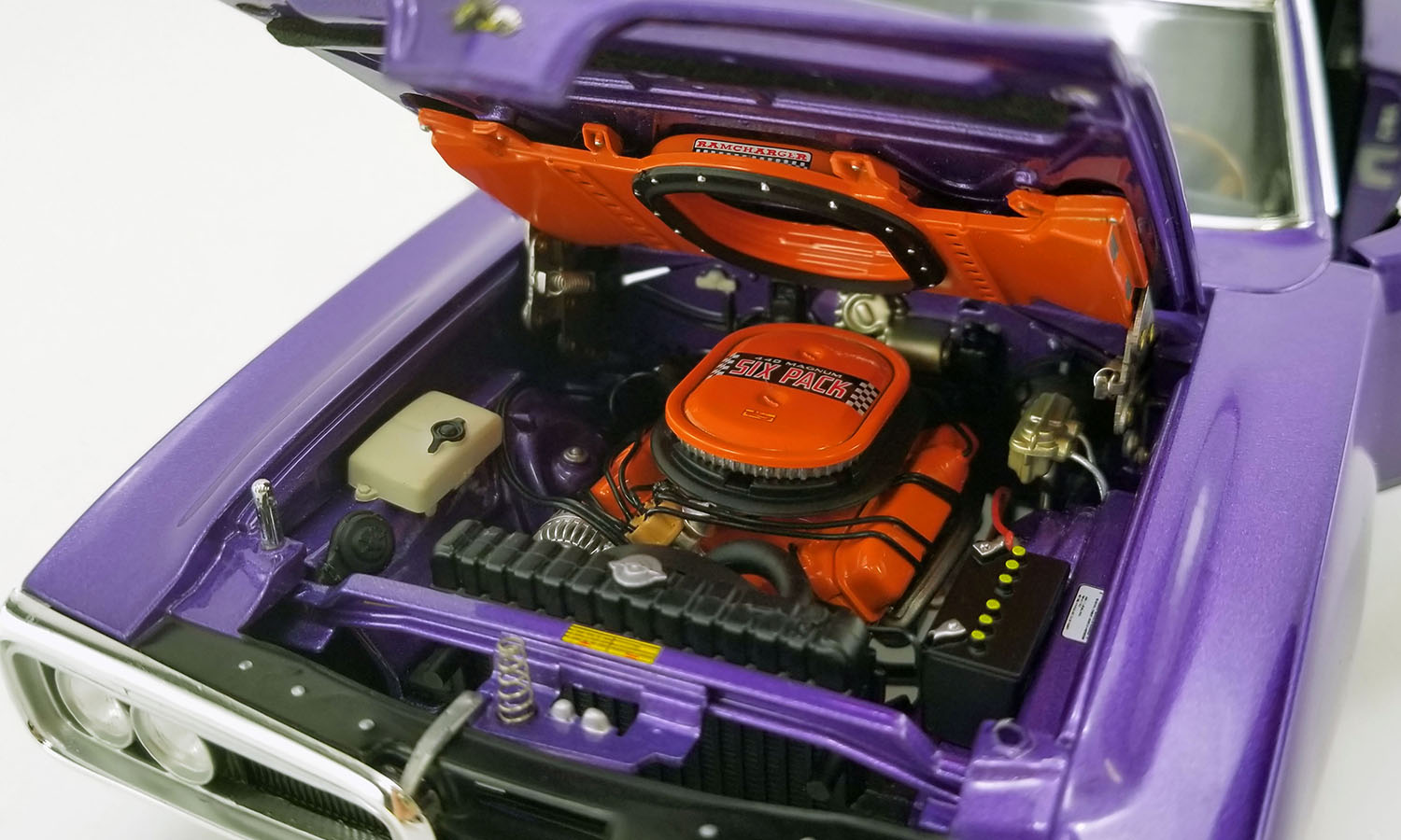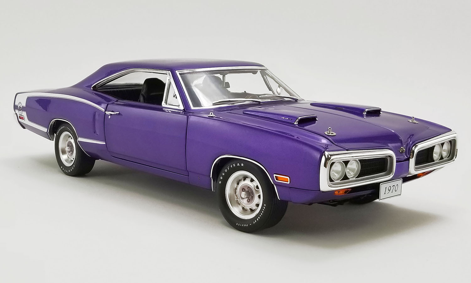 We are thrilled to announce the first brand new GMP tool in over 8 years! The 1970 Dodge Coronet and Super Bee tooling will include all parts and details that you would expect from a GMP model. Newly tooled parts will include model specific hoods, spoilers, interior pieces, body panels, engine parts, etc... The first release will be this stunning 1970 Dodge Super Bee finished in Plum Crazy with a black interior and white reverse C stripe package. Powering this piece of American iron will be the legendary 440 Six Pack! Get your pre-orders entered now as this one will sell out before it arrives!