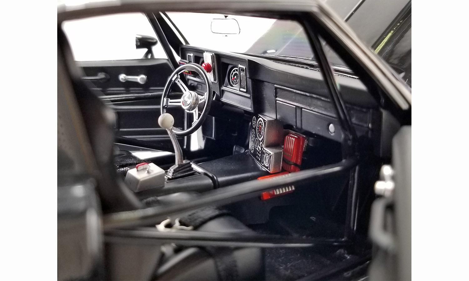 This black beast features a bored and stroked big block engine, 4 NOS bottles packed in the trunk, black street fighter wheels, full roll cage, race seats with five point harnesses and then finished off in a deep triple gloss black paint job! Good luck catching up coppers!