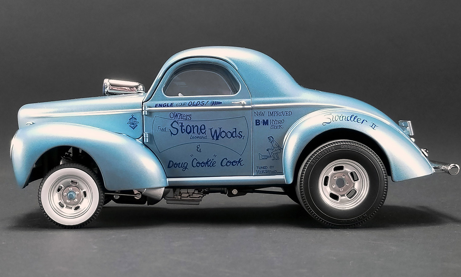 Stone, Woods & Cook's Swindler II 1941 Gasser In 1962, the Swindler II provided the SWC team with their first very successful season. The car debuted at the Winternationals that season and won the event! Later in the season, they would set the A/Gas class record with a quarter mile pass of 10.25 at 140.84 mph!