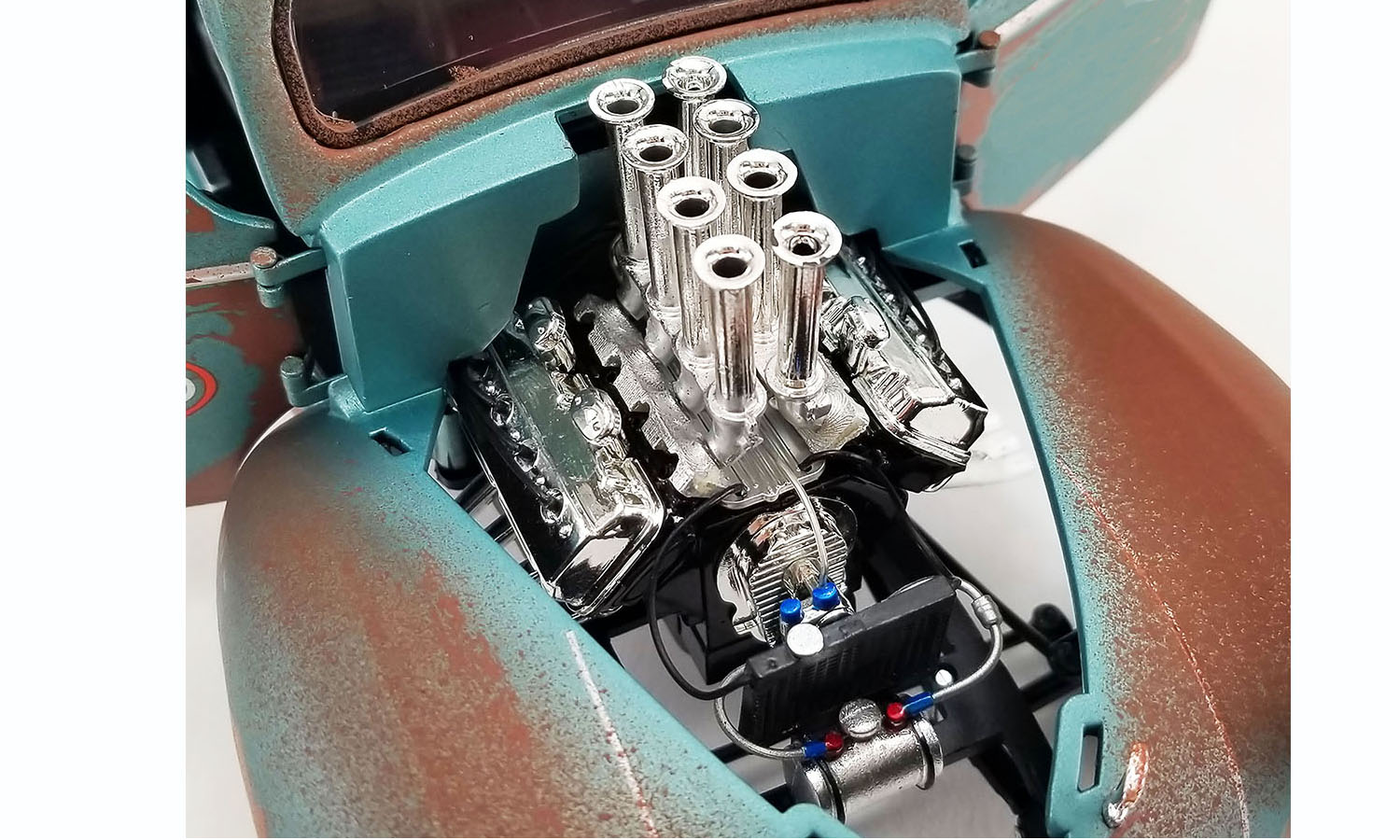 "We all knew that PC could drive the doors off of anything. So he'd figured he could make some folding money at the Pine Sap dragstrip to help get the shine business started. He'd heard bout a tuff feller over in Barrow County who wuz looking to dump his 41 Gasser cause the law had started to close in on him. So PC met up with this fella and looked over the gasser and started talking money and made a deal. Now the gasser was in rough shape. It had been sittin a spell and needed some love, but your daddy wasted no time in gettin it ready to race. He patched up the worst rust spots, cleaned up the interior and then pulled out the ole worn out engine and shoved in a monster injected HEMI! Now don't go askin me how he got his hands on that HEMI, boy. Anyway, that is how your daddy wuz able to start moonshinin. Whippin every car at the dragstrip with that ole 41 Gasser that he called ALKY HAULER."