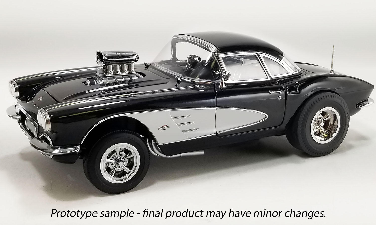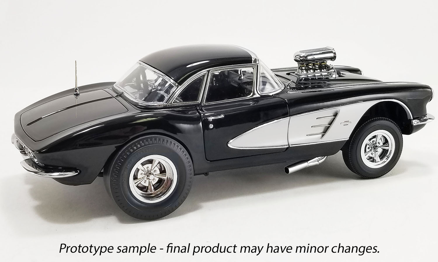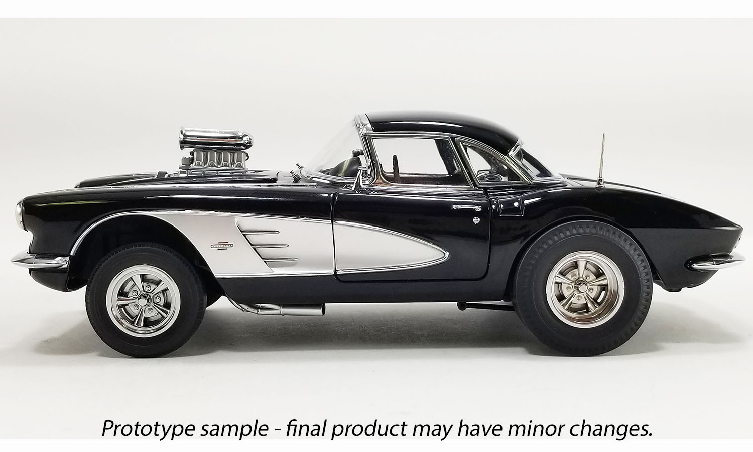 The Showtime 1961 Chevrolet Corvette Gasser will be the first Corvette gasser released with the all new rounded rear fender tooling! It will also feature custom headers, chromed out blown drag engine, chrome 5- spoke drag wheel & tires and much more!