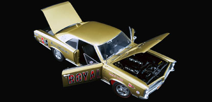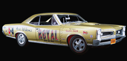 Royal Pontiac was the epicenter of Pontiac performance for a unique decade that began in the late 1950s. The most famous Royal product of that period was the Bobcat tuning kit that transformed the GTO into an instant drag strip terror. No-one worked the Bobcat magic better than Royal’s Performance with seemingly endless parades of Royal-sponsored racers including the most famous of them all, the 1966 Royal GeeTO Tiger. ACME is proud to announce this unique GTO in beautiful Tiger Gold paint!