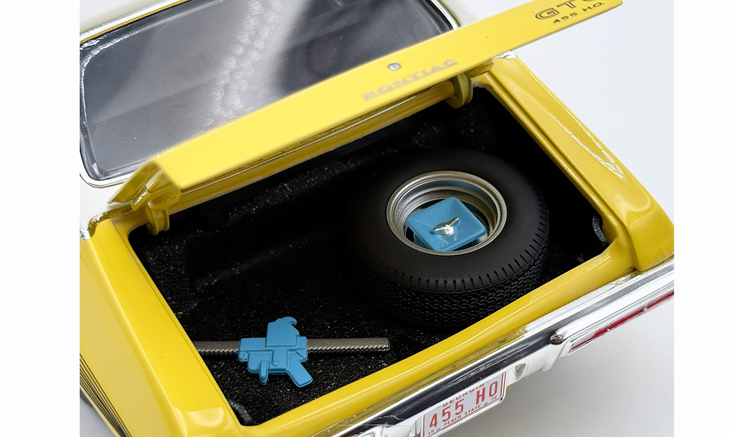 The 1972 Pontiac GTO LeMans was produced during the transitional period for the American auto industry. Gas prices were creeping up and emissions standards were tightening, signaling the muscle car era was ending fast. But amid this backdrop, there emerged a wolf in sheep's clothing. As beneath the familiar LeMans sheet metal, a potent 455 cubic-inch V8 lurks ready to pounce on unsuspecting opponents. he vinyl top version finished in Monarch yellow is an extremely rare model. It is one of only 7 that were produced with the 455 H.O. engine combined with an automatic transmission.