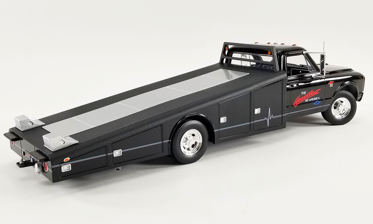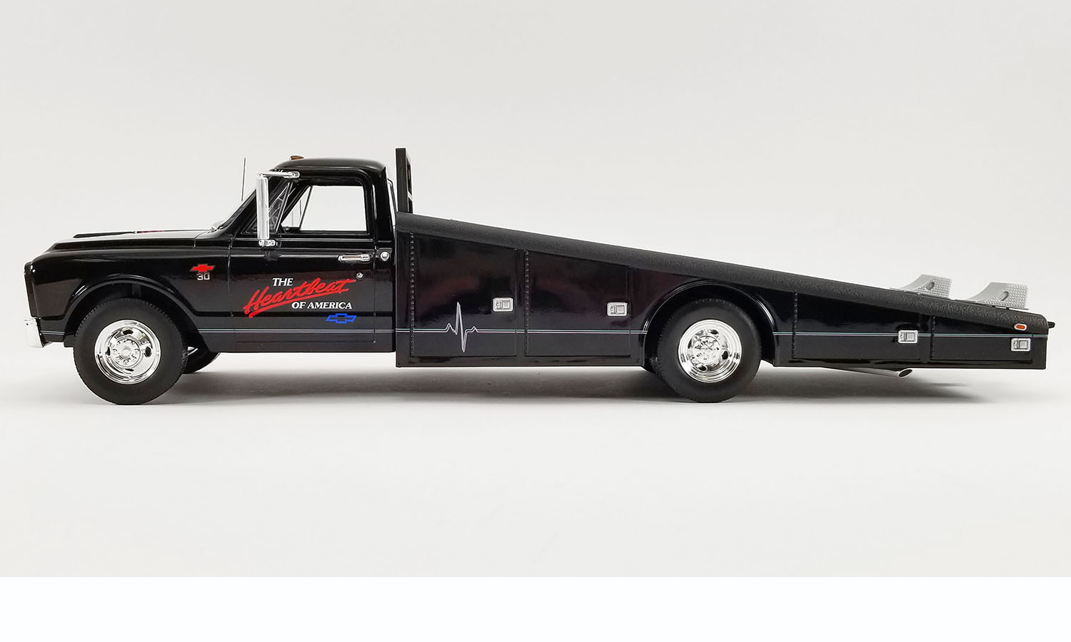 The Heartbeat of America, Today's Chevrolet! I'm sure most of us can still remember hearing these words being sung in those Chevrolet commercials. Little did Chevrolet's advertising team know that they had created one of the most successful and memorable ad campaigns in automotive history. The campaign would run for nearly a decade and would completely dominate the automotive advertising market but also the accessories market. Chevrolet made hats, tshirts, jackets and of course the famous Heartbeat license plates. AMAZING! So, ACME is thrilled to announce The Heartbeat of America 1967 Chevrolet C-30 Ramp Truck! This will be the perfect ramp truck to add to your collection and to display your favorite Chevy models on!