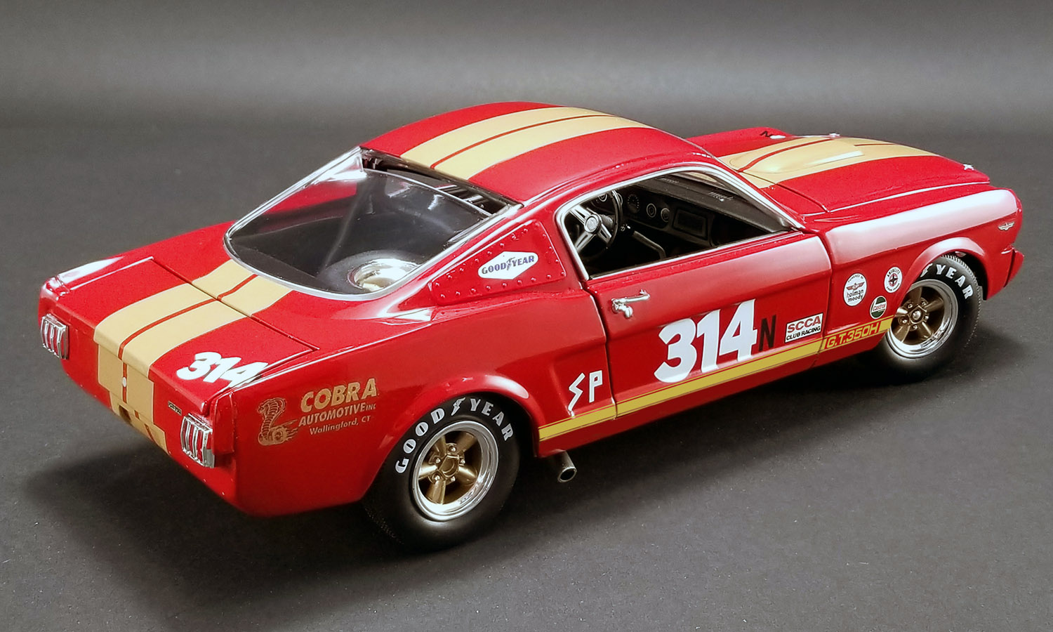 Mustang 6S564 began its life as a standard GT350 H rental car used for Hertz’s memorable “rent-a-racer” program. Following the car’s retirement from active rental duty, it was purchased in late 1966 or early 1967 and transformed to its current state, an authentic Trans Am racer where it competed in SCRA, SCCA and SAAC events. ACME is proud to release this beautiful tribute GT350H rent a racer for all to enjoy.