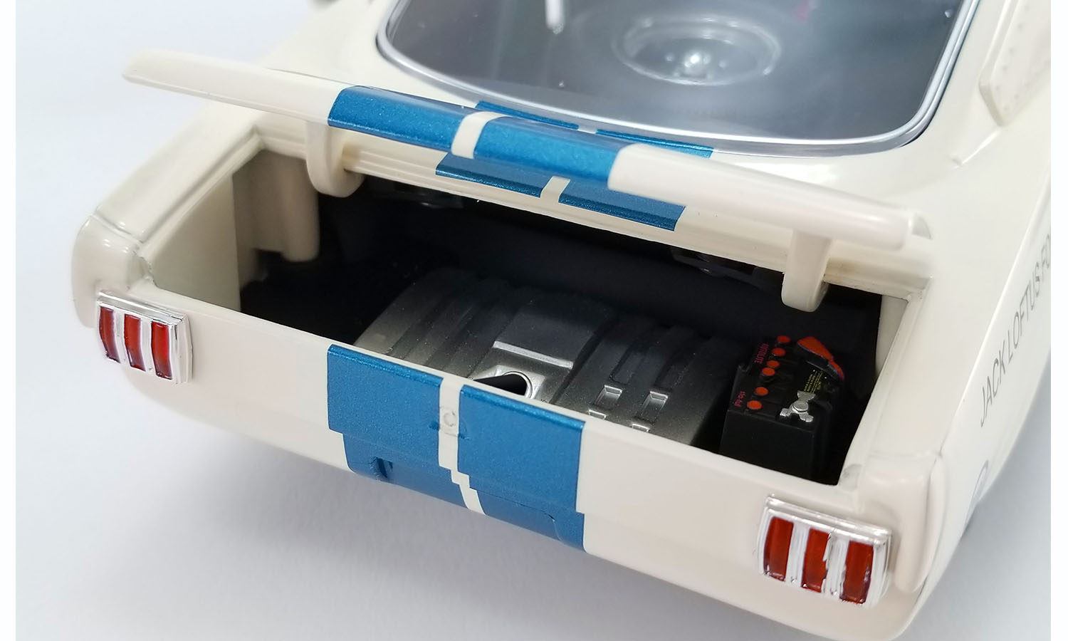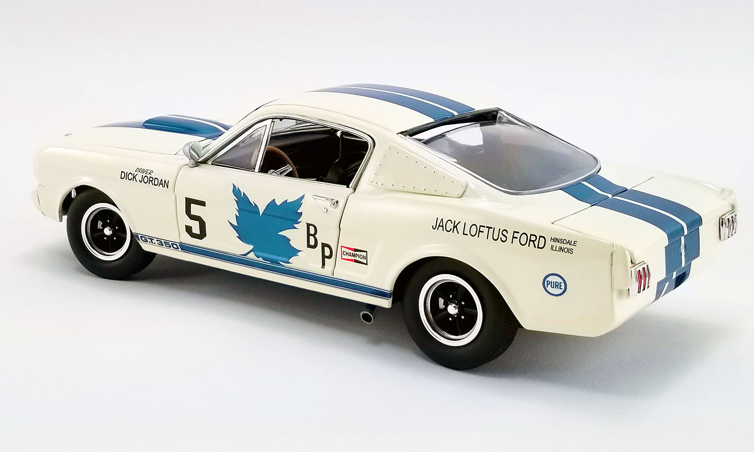 There were only 34 GT350R models built, and they are the heart and soul of the Shelby Mustang lineage. They dominated SCCA racing in their first season and obliterated other models from the American Road Racing Championship for the next three years. This particular car was delivered to Jack Loftus Ford and was then bought by Dick Jordan. Dick raced the car into the early 70’s where it was then parked in storage until 1986. This car is a rare unmolested piece of history . ACME is proud to release this beautiful 1965 Shelby GT350R. Place your orders today to ensure your copy of this fantastic piece of American racing history.