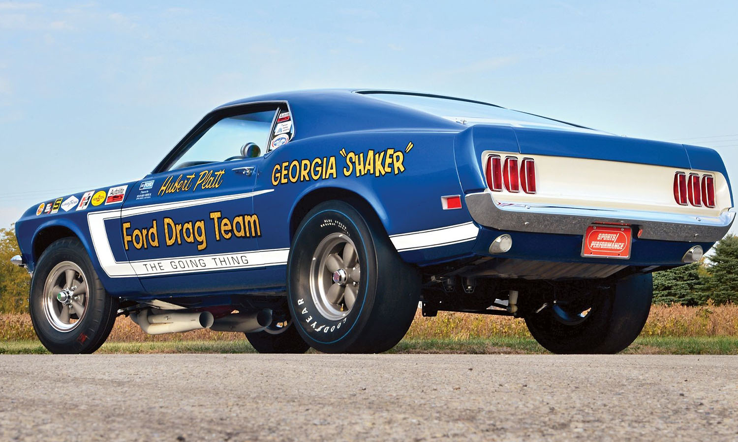 Driver Hubert Platt was on top of the drag racing world in 1969. Known for his on-track showmanship and cars lettered with his "Georgia Shaker" nickname, Platt had risen through the ranks, hitting the big-time in 1962 as a Chevrolet Z-11 teammate with "Dyno" Don Nicholson before going professional with a Ford Thunderbolt in 1964. That attracted Ford's attention, and in 1966 he landed a factory ride in a Holman-Moody built long-nose Mustang followed by a '67 427 Fairlane in the Super Stock class. In late 1968 when Ford decided to promote its drag racing clubs, not to mention the new Muscle Parts program, they brought in the popular Platt as part of a six-car Ford Drag Team.