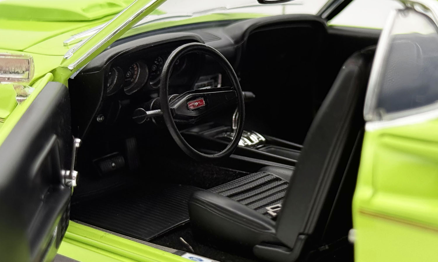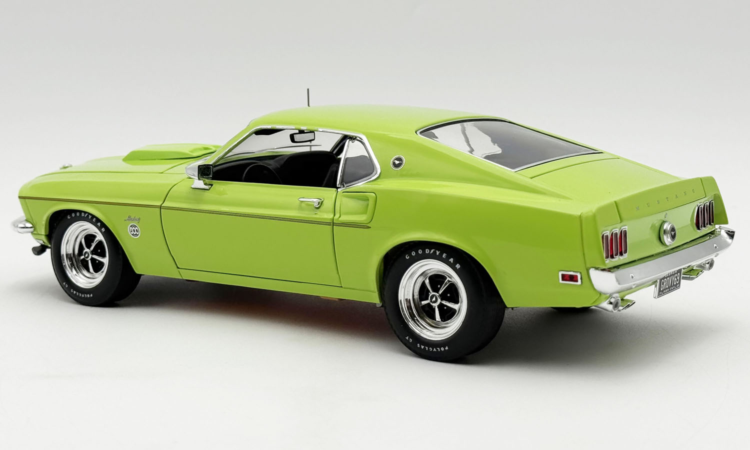 Groovy Green - Limited to 300 pieces - The 1969 Ford Mustang Limited Edition 600 is a unique and obscure Mustang variant marked by its exclusive colors, regional marketing, cosmetic upgrades, and limited availability, making it a distinctive classic pony car from the muscle car era. Each of the cars received a special Limited Edition 600 decal, which was located under the Mustang emblems on the front fenders. Other features included a non-functional hood scoop, and AM radio. However, the rarest 600 could be achieved by applying the F-code to the order which yielded the 302 V8 engine