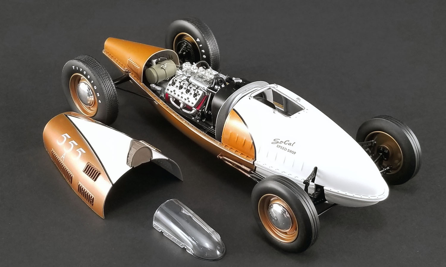 The So-Cal Speed Shop team took this lakester to El Mirage Dry Lake in 1948 and proceeded to set a streamliner class record! This experience was invaluable in regards to fine tuning the tanker before going to Bonneville. Over the next several years, the So-Cal Tanker would go on to set numerous land speed records at Bonneville and would be named the "Most Honored Car in the History of Bonneville". Do not miss your chance to own this piece of automotive history.