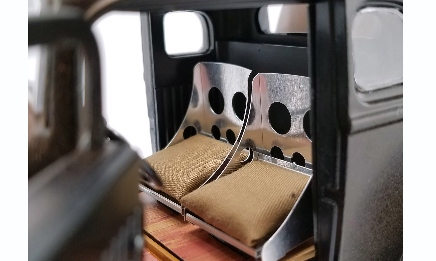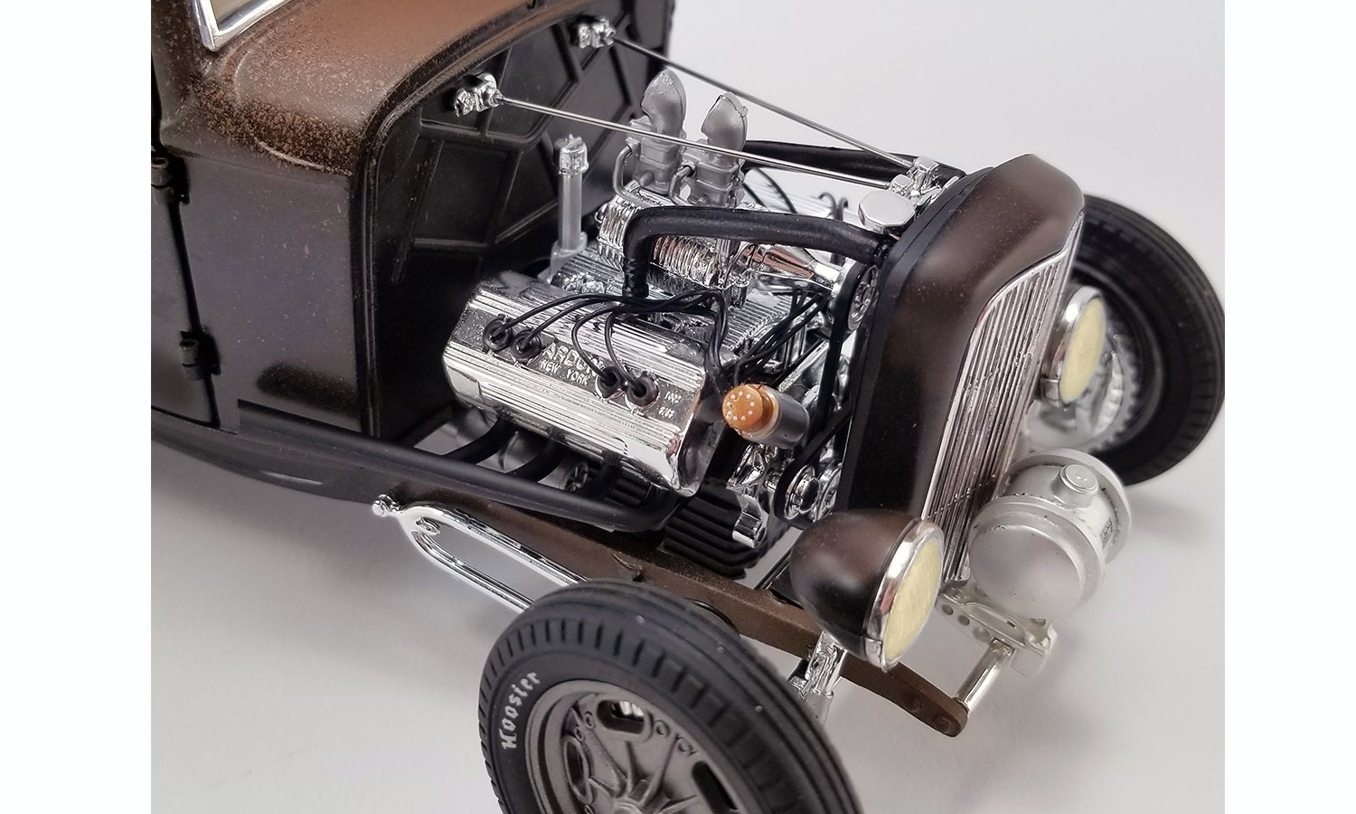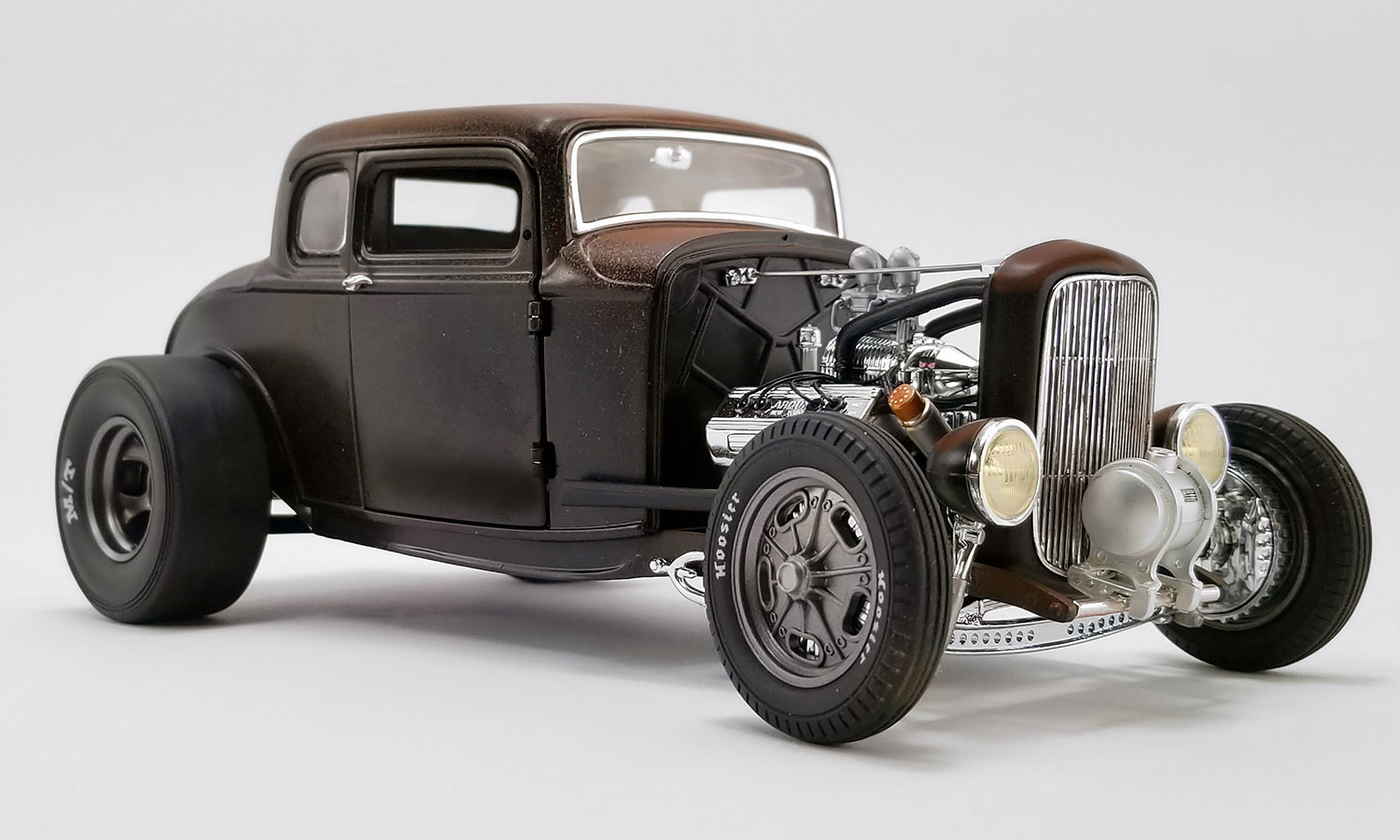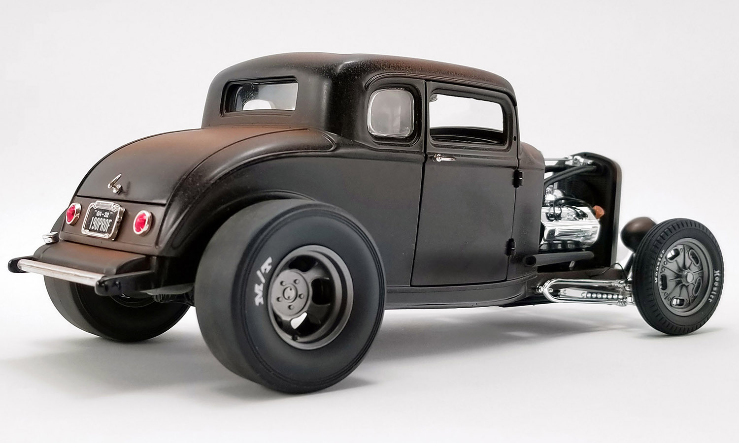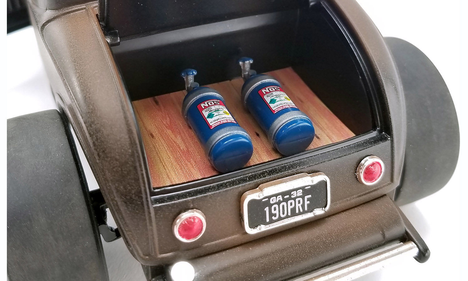 Pork Chop is back with his latest creation to move that hot shine thru the GA backwoods! After finding this long forgotten 32 in the back pasture over grown with kudzu, PC decided to get the ole girl runnin again. Outfitted with a blown ardun flathead he aquired in a late night poker match years ago, he knew it needed more power. So he scrounged up two nitrous tanks and hooked em up and it boiled the old skinnies so he needed some new shoes to handle that new found power. After looking thru the pole barn out back he found his old mag wheels from the black sheep he built years before and slapped em on. He also figured he should do something about the holes in the floor so he plained some lumber and made his own pine floor! Only thing left to do now is test it in the dirt!