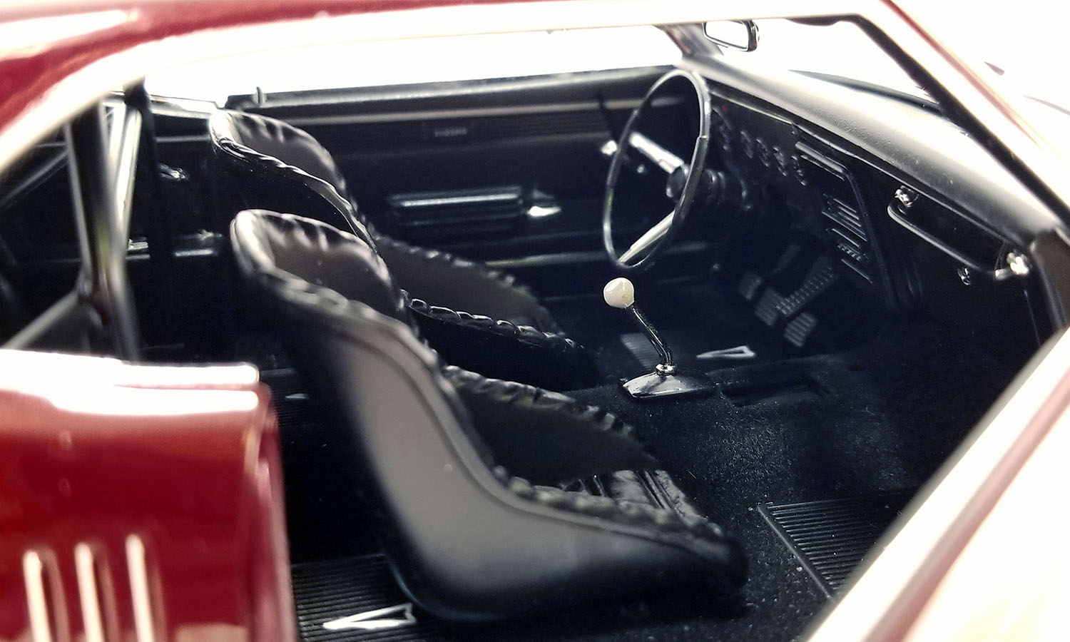 This monster Firebird is equipped with a striking custom metallic maroon paint job, blown 455 engine, opening doors, hood and trunk, drag wheels and tires, detailed interior and undercarriage, poseable steering, and much more!