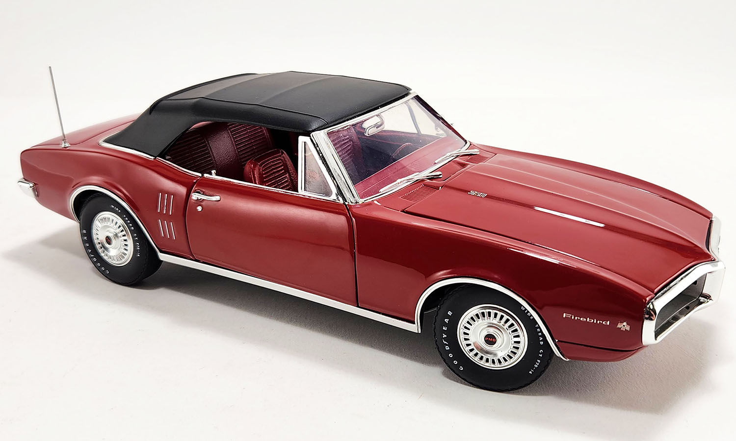 The Pontiac Firebird holds a well-deserved legacy among classic American pony cars. The pair with VIN 001 and 002 came out of the Pontiac Lordstown, OH, assembly plant in early 1967. Pontiac toured with them for auto shows and marketing materials before eventually selling them. The Serial Number 001 Pontiac Firebird was restored to stock condition by adding a fresh coat of Regimental Red paint, which matches the red interior, adding a traditional black convertible top, and restoring the nuts and bolts. Incredibly, it features the original L30 326-cubic-inch V8 engine and boasts a 2-barrel Rochester carburetor that produces 250 horsepower. This model will also feature ALL NEW WHEEL TOOLING FOR SERIAL #1.