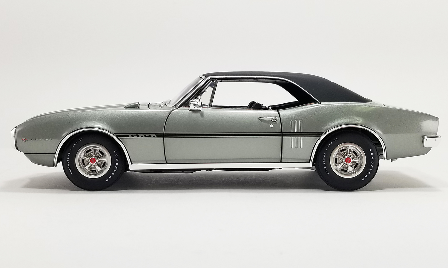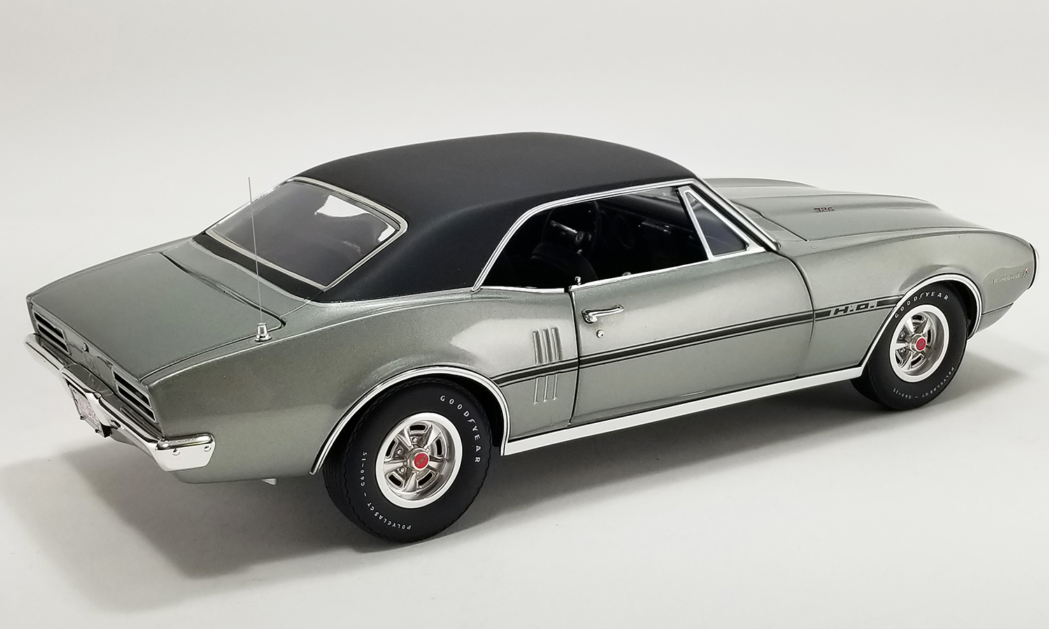 The 1967 Pontiac Firebird H.O. Serial #002 was the second Firebird produced and the first in a coupe configuration. Decked out in silver paint with a black vinyl top and powered by a V8 engine with a four-barrel carburetor, higher compression and dual exhaust, it produces up to 285 hp. Firebirds inspired generations of auto enthusiasts. We’re stoked to see them restored to their former glory and given the proper respect they deserve.