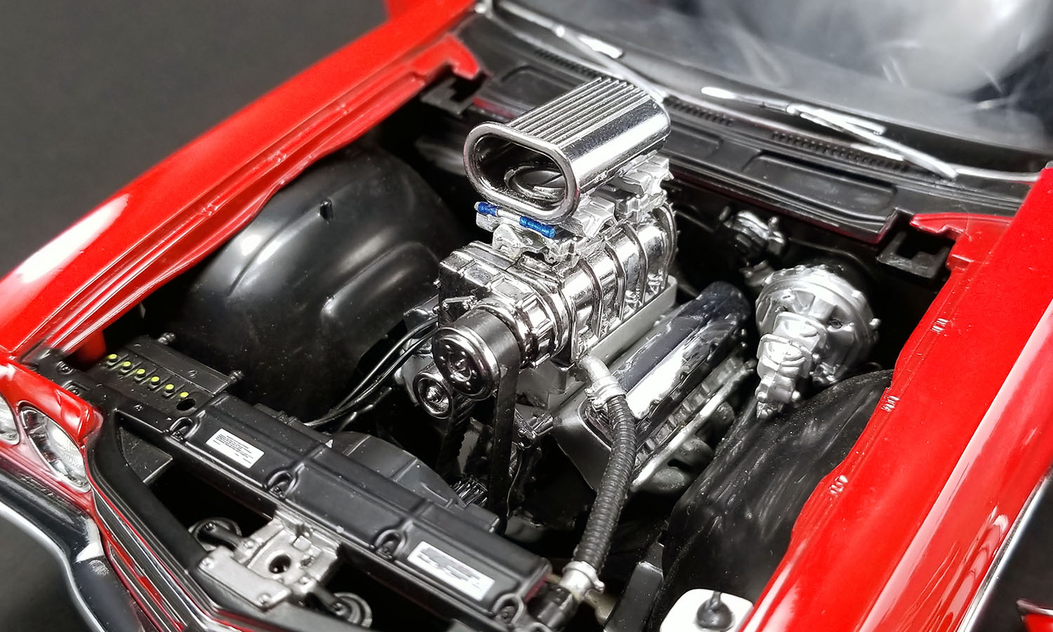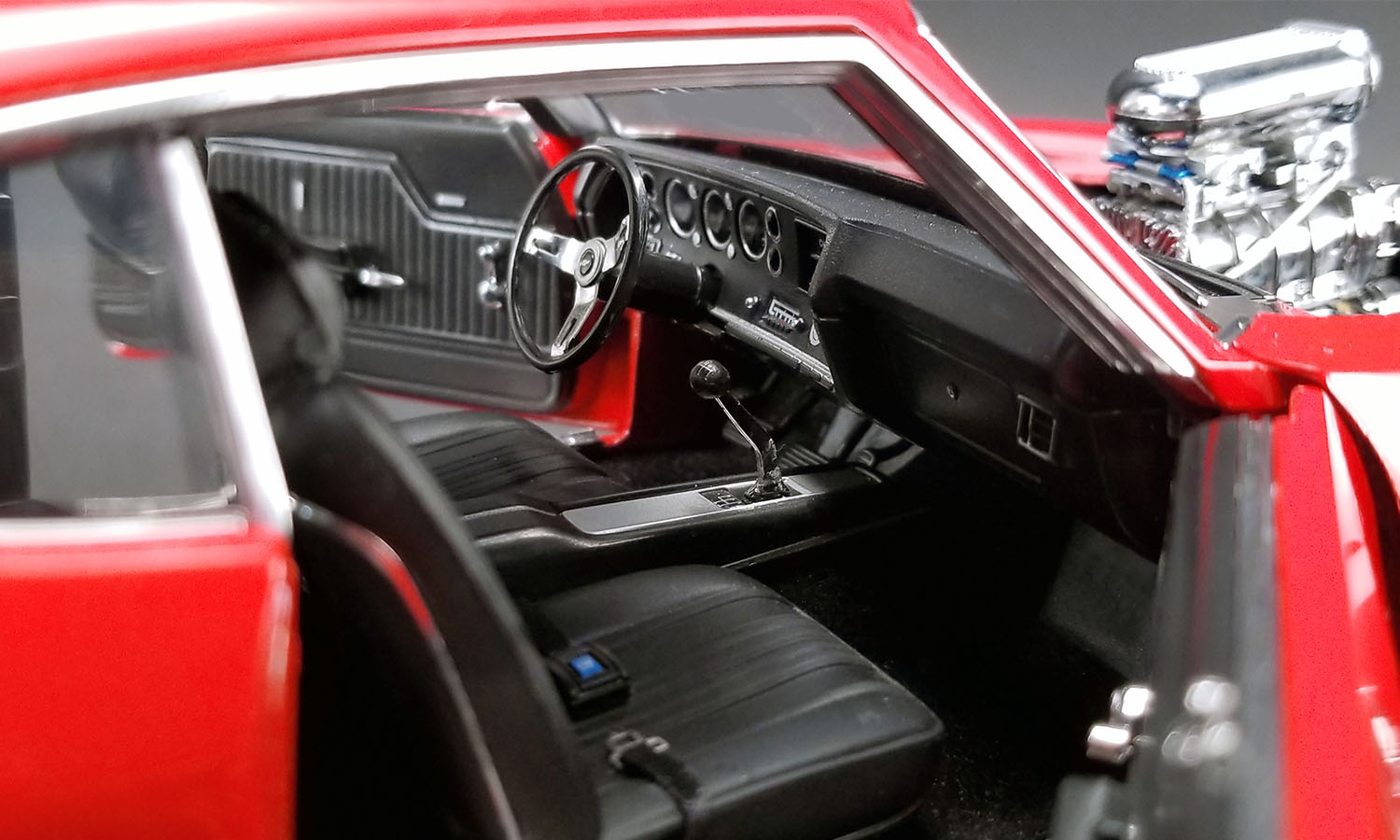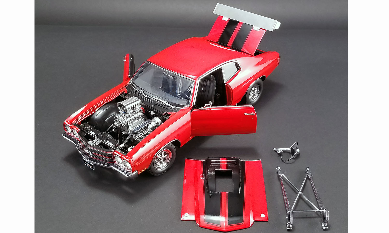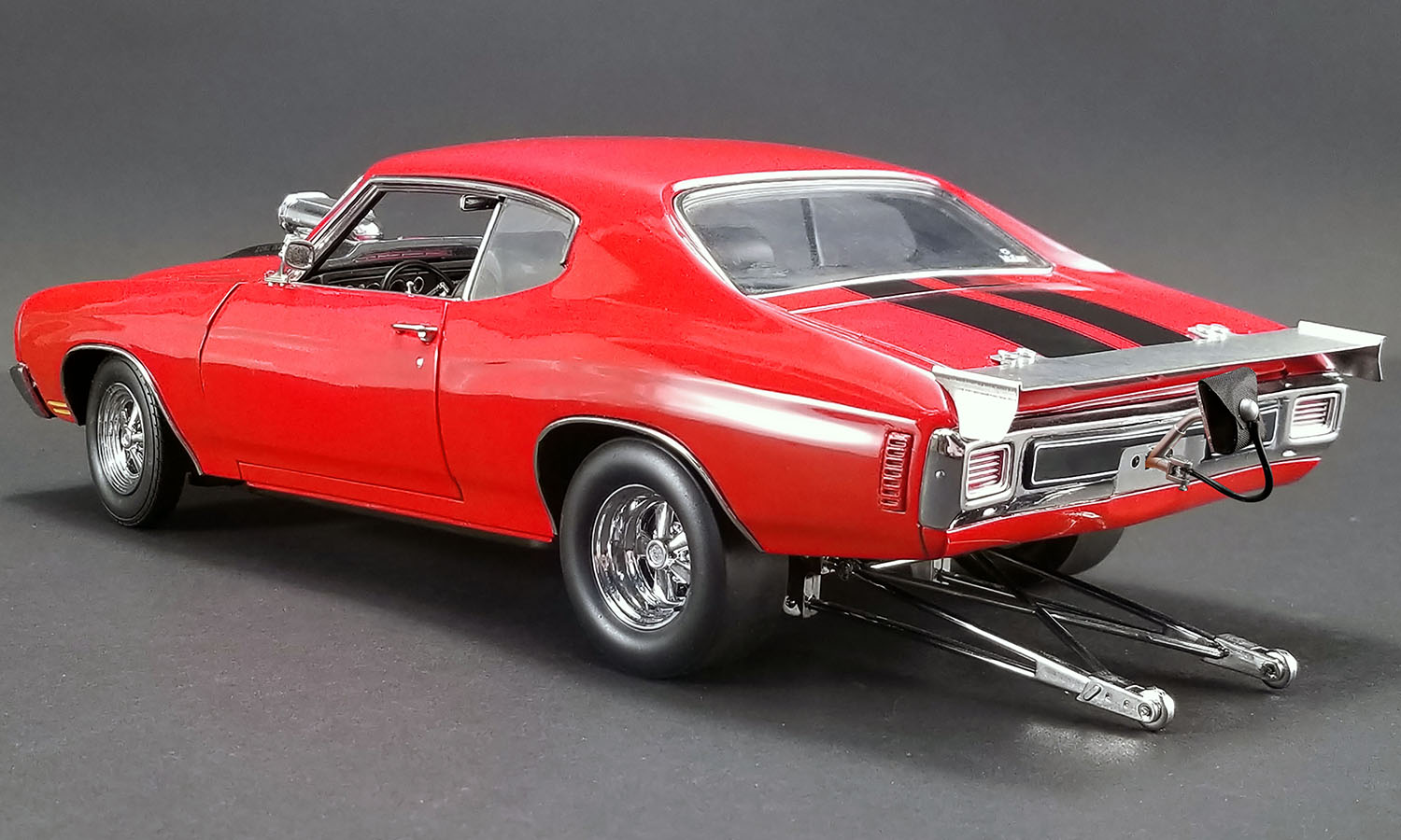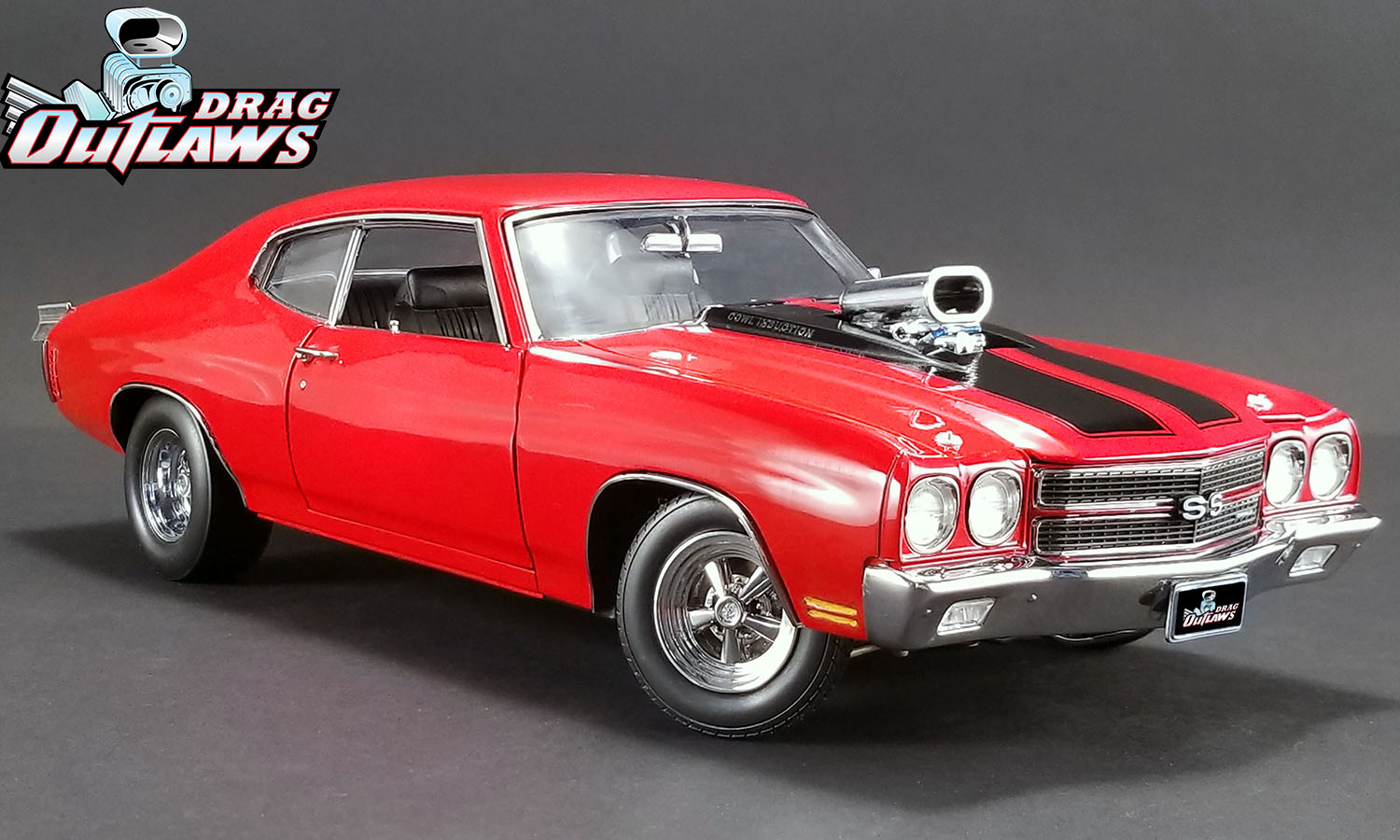 ACME is proud to announce their second release in the Drag Outlaw series with this tire burning 1970 Chevelle SS! This release will surely put the competition to sleep with it’s blown big block 454 LS6 powerplant under the hood and if it needs a little extra punch it has a nitrous bottle waiting to be used in the trunk. Rolling on beautiful chrome plated Cragar drag wheels and hot custom red paint this one will surely be the focal point in your collection.