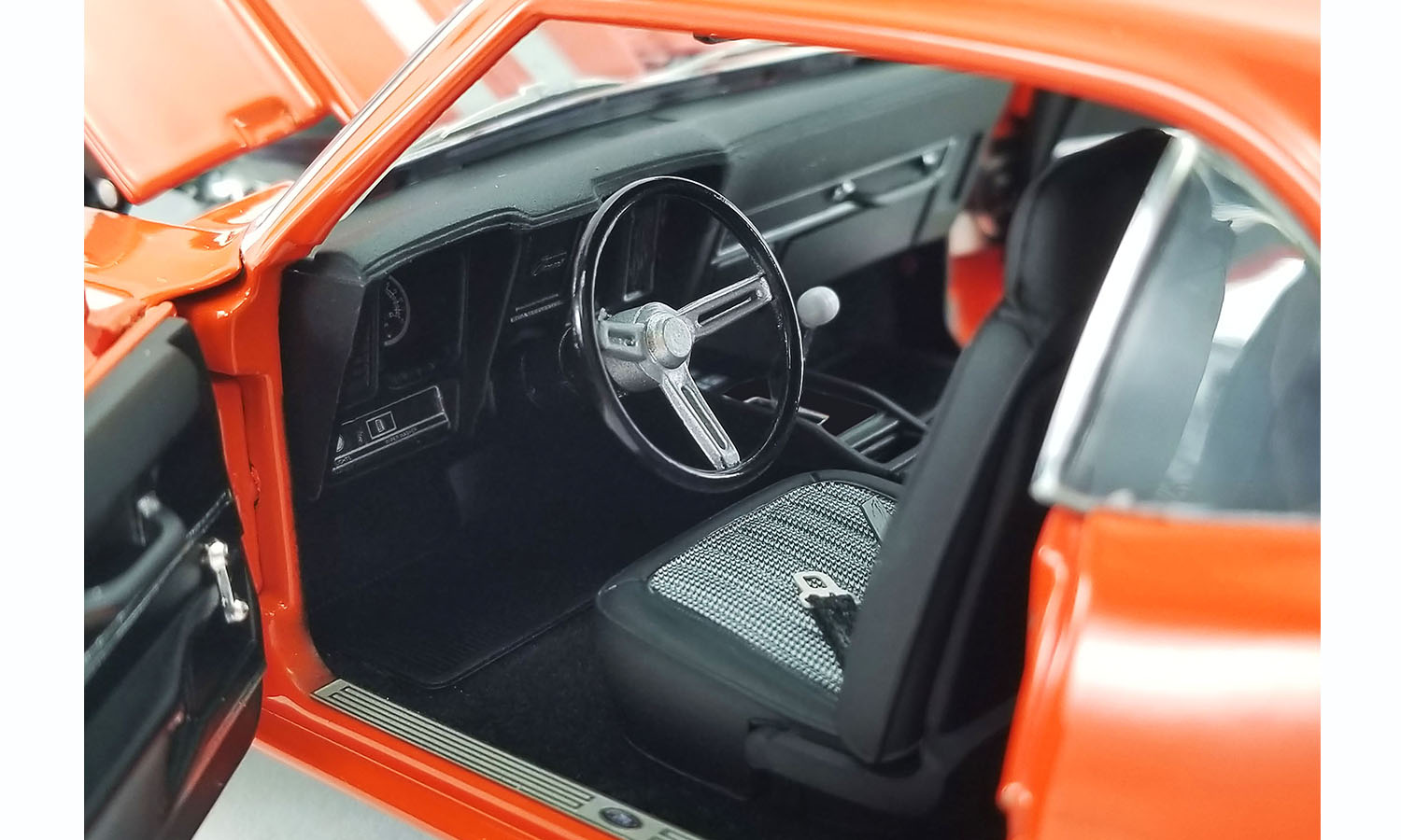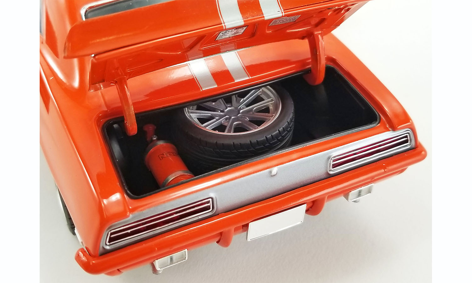 It doesn't get much better than this! A custom 1969 Chevrolet Camaro finished in brilliant Hugger Orange paint with a custom silver stripe package! In addition to the killer paint job, this Restomod Camaro features a custom houndstooth interior, fully plumbed and wired big block Chevy engine, Nitrous bottle in the trunk, our new G-Force Street Fighter wheels wrapped in a set of performance tires, opening doors and hood and trunk and much more!