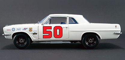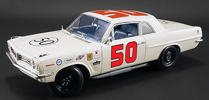 The 250 mile Challenge cup race was a way for NASCAR to generate money through ticket sales during Speed Week and to bring in a different crowd who wanted to see exotics being raced. Those people came for the exotics like the Ferrari GTO but instead got to see one of Pontiac’s great shining moments in racing. Right out of the gate Goldsmith let everyone know the Tempest meant business by putting the Tempest on the pole and by a signifigant margin. From the start the hammer was laid down and that 421ci motor began to scream away from the competition. Goldsmith dominated the entire race passing the mystery 427 Corvettes and lapping a Ferrari 8 times! By the end of the race he had lapped the second place finisher, AJ Foyt in a Corvette twice before the race was over! He won by an incredible 5 miles over the competition! This was one of the crowing achievements in Pontiacs history that few were privelaged enough to witness forst hand. ACME is proud to bring this moment in history back to life with it’s all new 1:18 replica of the 1963 Super Duty Tempest that shocked the world.