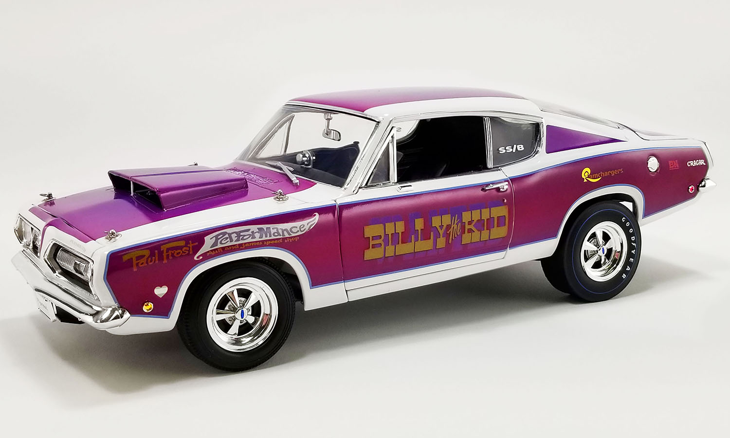 In a sport populated by edgy and colorful characters, there has never been anyone quite like William Elias “Billy The Kid” Stepp, a genuine outlaw whose drag racing exploits were only one part of his notoriety. Billy, who hailed from Dayton Ohio ran a string of highly successful "Billy the Kid" Mopar cars, from 1968 thru the mid 90's. With his "Billy the Kid" stable of drivers reading like a "who's who" that included Ronnie Sox, Don Carlton, Dick Humbert, even Herb McCandless for one race. Don't miss out on this awesome 1968 Plymouth Barracuda - Billy the Kid!