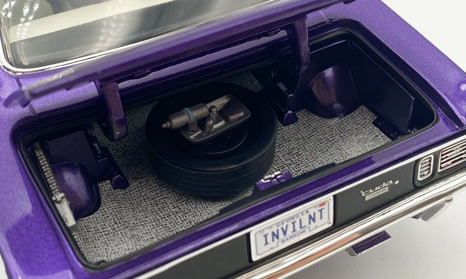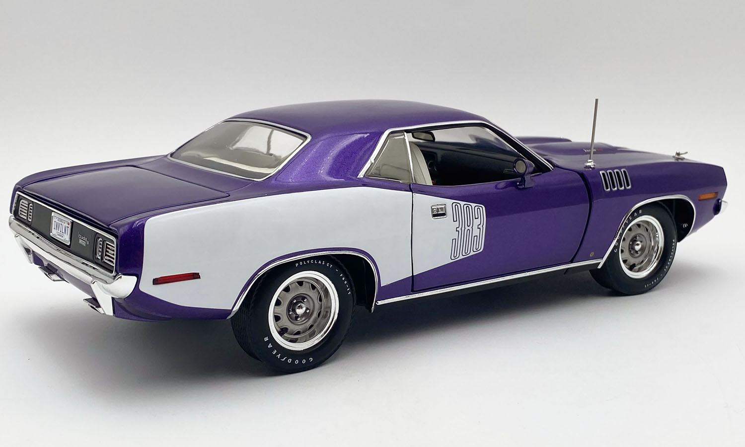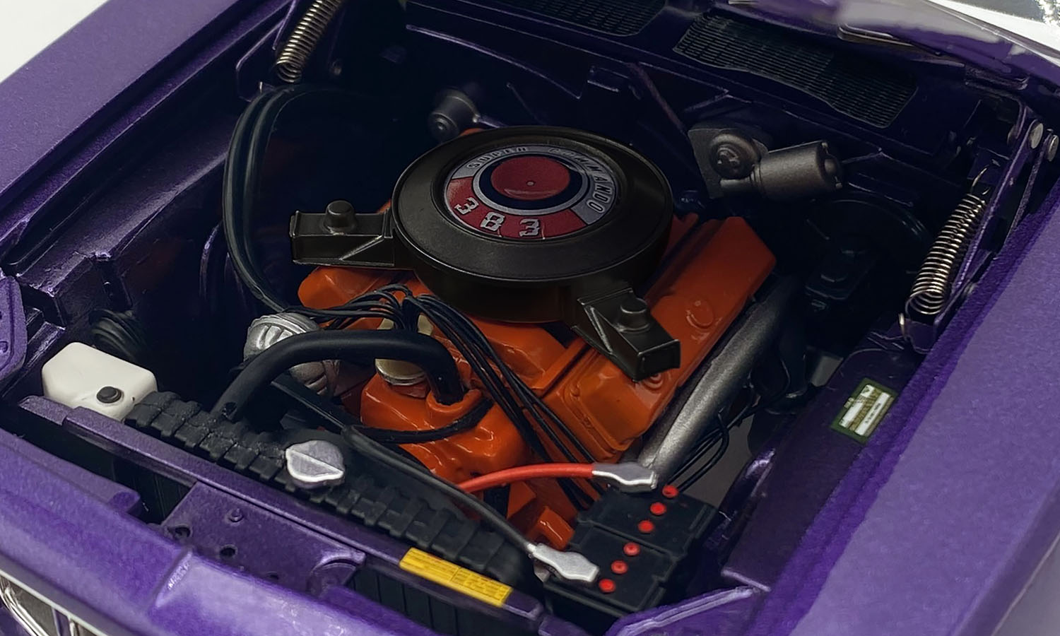 There’s little doubt that the 1971 Hemi 'Cuda is the Holy Grail of muscle cars! It’s the one muscle car that stands out for being the first American muscle car to demand north of the million dollar mark at auction (in 2014). But the status of the Hemi Cuda is not new; it has long been lusted for as a legendary muscle car with sinister looks and the power to back it up. First, yes, it's In Violet paint (commonly referred to as Plum Crazy), that wild and eye-grabbing '70s pop-culture hue that practically defined Mopar performance machinery. Both models have white seating and door panels with black dashboard and carpet. Under the hood you'll find the 383 Big Block Wedge powerplant which was designed to be a great combination of thrift and performance. Few Detroit muscle machines had the same impact as the 1971 Cuda with lightning acceleration, flamboyant paint and styling.