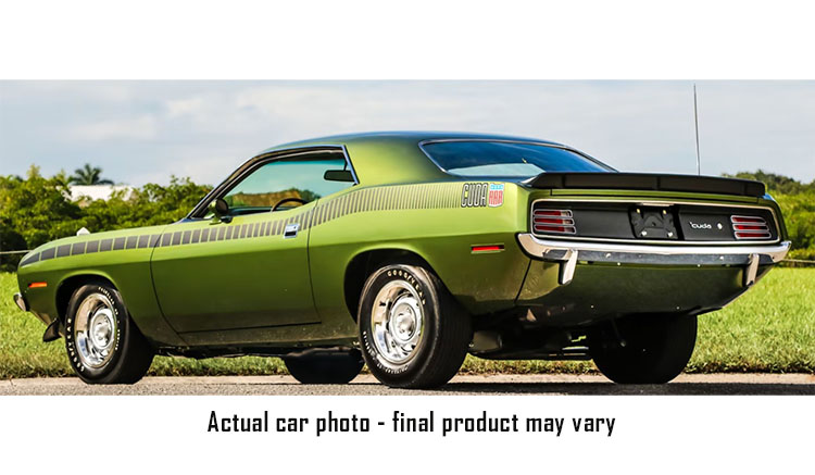 The 1970 AAR 'Cuda was a very rare machine. It was made only for the 1970 model year, with a total production of 2,724. The car's namesake was the AAR (All American Racers) Plymouth Barracudas that were campaigned by famed racer Dan Gurney's team in the SCCA-sanctioned Trans-Am series. This Plymouth AAR Cuda sports a gorgeous Ivy Green paint with the strobe stripes down the side and a beautiful green interior! Under the hood a fully detailed 340 engine with dual exhaust sending power to the Rallye wheels and tires and so much more!!