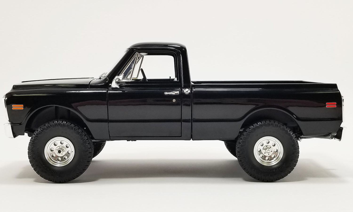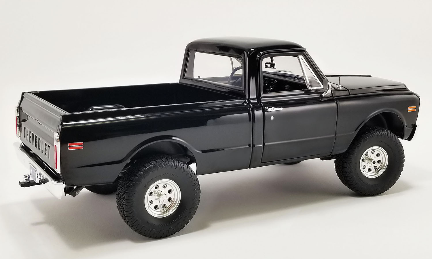 If you love old Chevy trucks it might be because you have memories from when you were a kid riding in one of those early models. This generation of Chevrolet K10 trucks are some of the most valued collector trucks and are still in high demand today. This workhorse is powered by a 350 cid Chevy small block V8 that provides plenty of torque to the drive train. Our model is finished in a stunning black paint and sporting our new Chrome off road Wheel & Tire set.