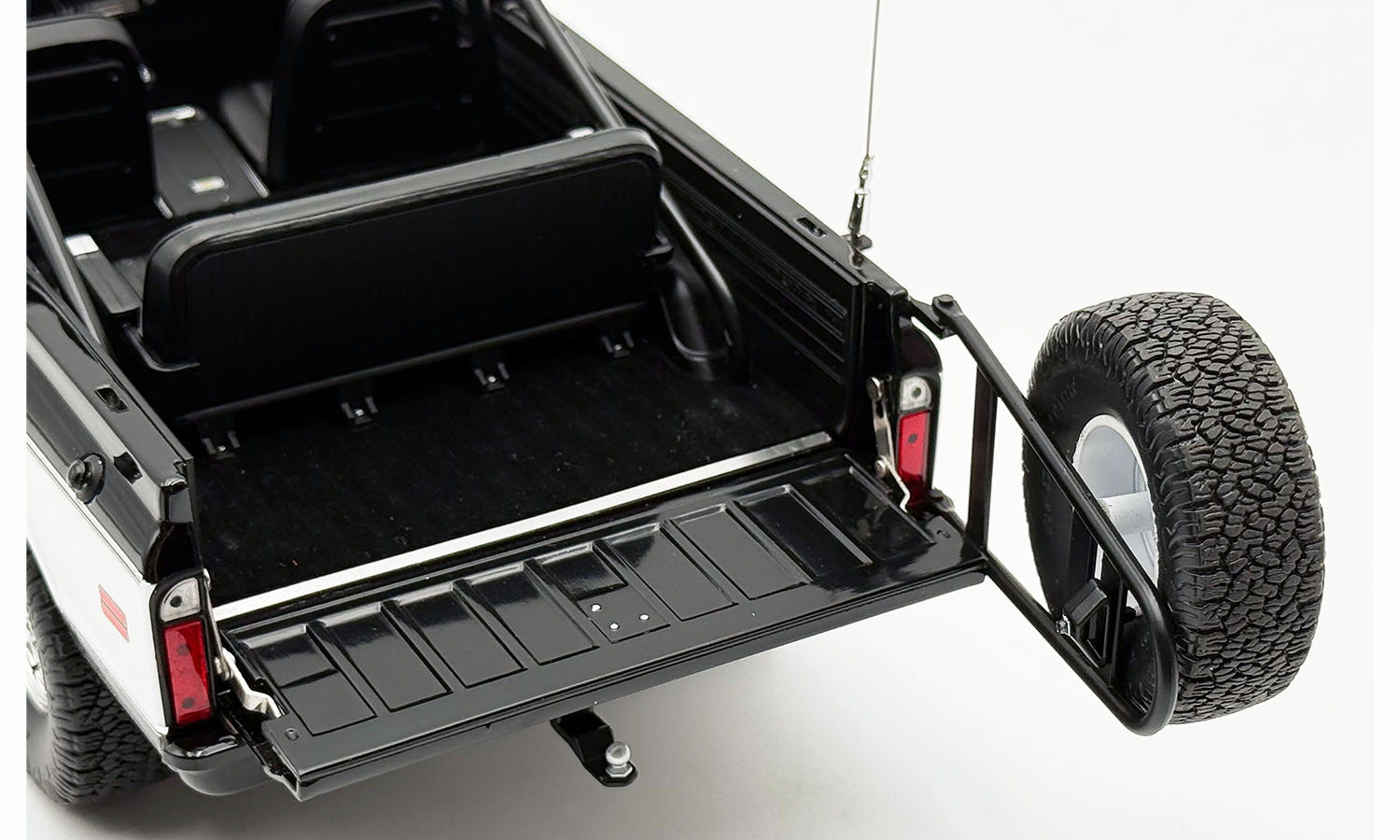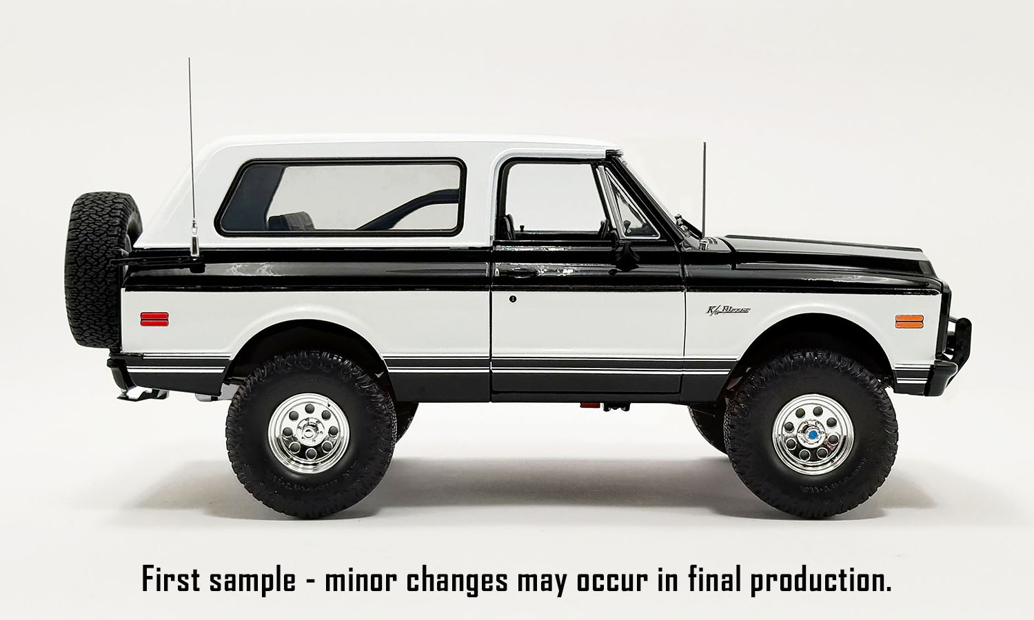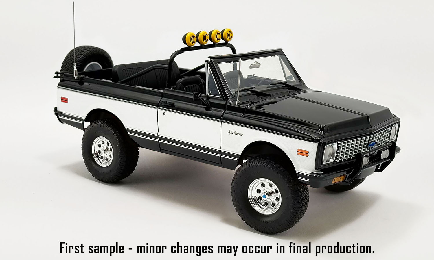 This awesome 1971 Chevrolet Blazer K/5 is decked out in a period correct two tone Tuxedo black and white paint job while sporting a custom lifted off road suspension with 35" off road tires wrapped around our all new Mag style wheels! This Blazer also features an array of other details that include a roll bar with KC lights, push bar bumper guard, custom off road exhaust, opening hood, doors, and tailgate with a removable top and a fully detailed interior and so much more!