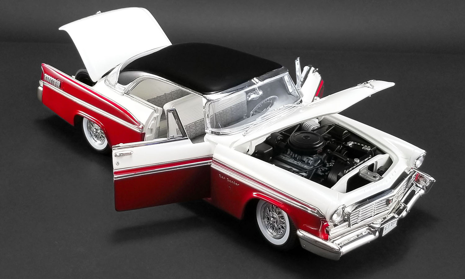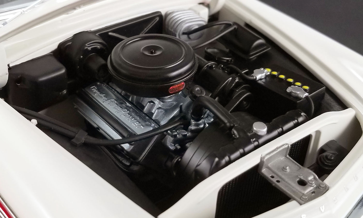 This beautiful 1956 Chrysler New Yorker St. Regis mold was originally developed by Precision Miniatures, but they were never able to get a production run completed. It features a fully detailed engine bay, interior and chassis. It has fully functional steering and suspension, opening hood, doors and trunk and much more!