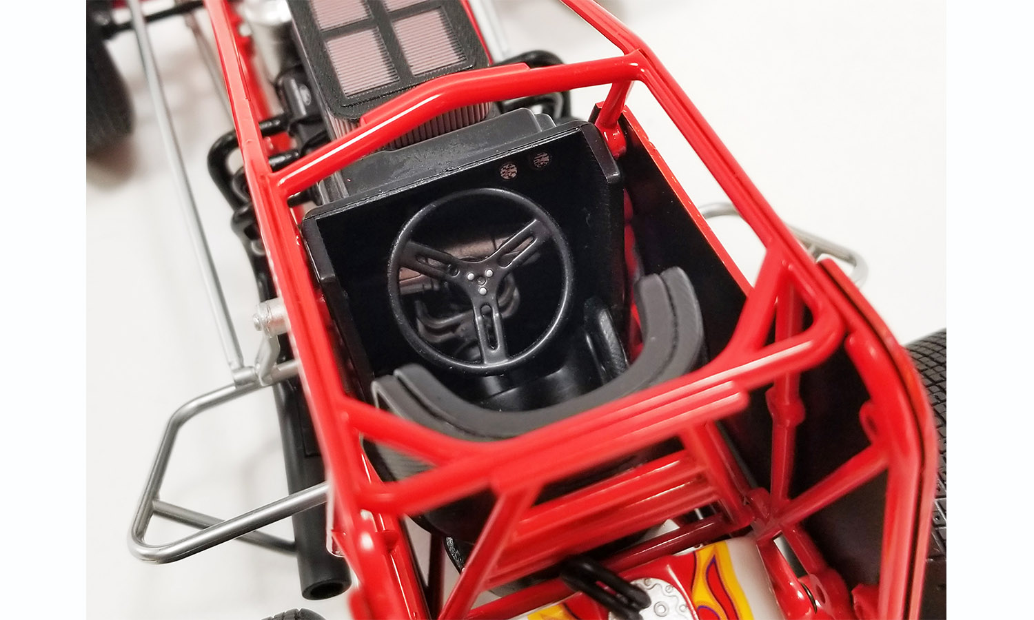 In 2020, Jeff Swindell was inducted into the National Sprint Car Hall of Fame. His legendary career spans nearly five decades earning 51 World of Outlaws feature victories. In the 1998 World of Outlaws season, Jeff Swindell campaigned the #104 Octane Boost Sprint Car. This car became one of his most recognizable rides, standing out with its vivid graphics and aggressive stance.