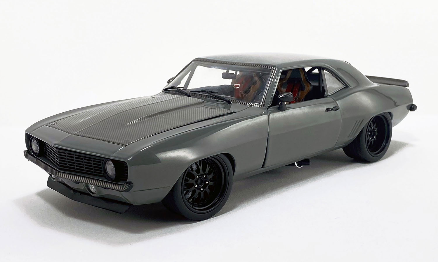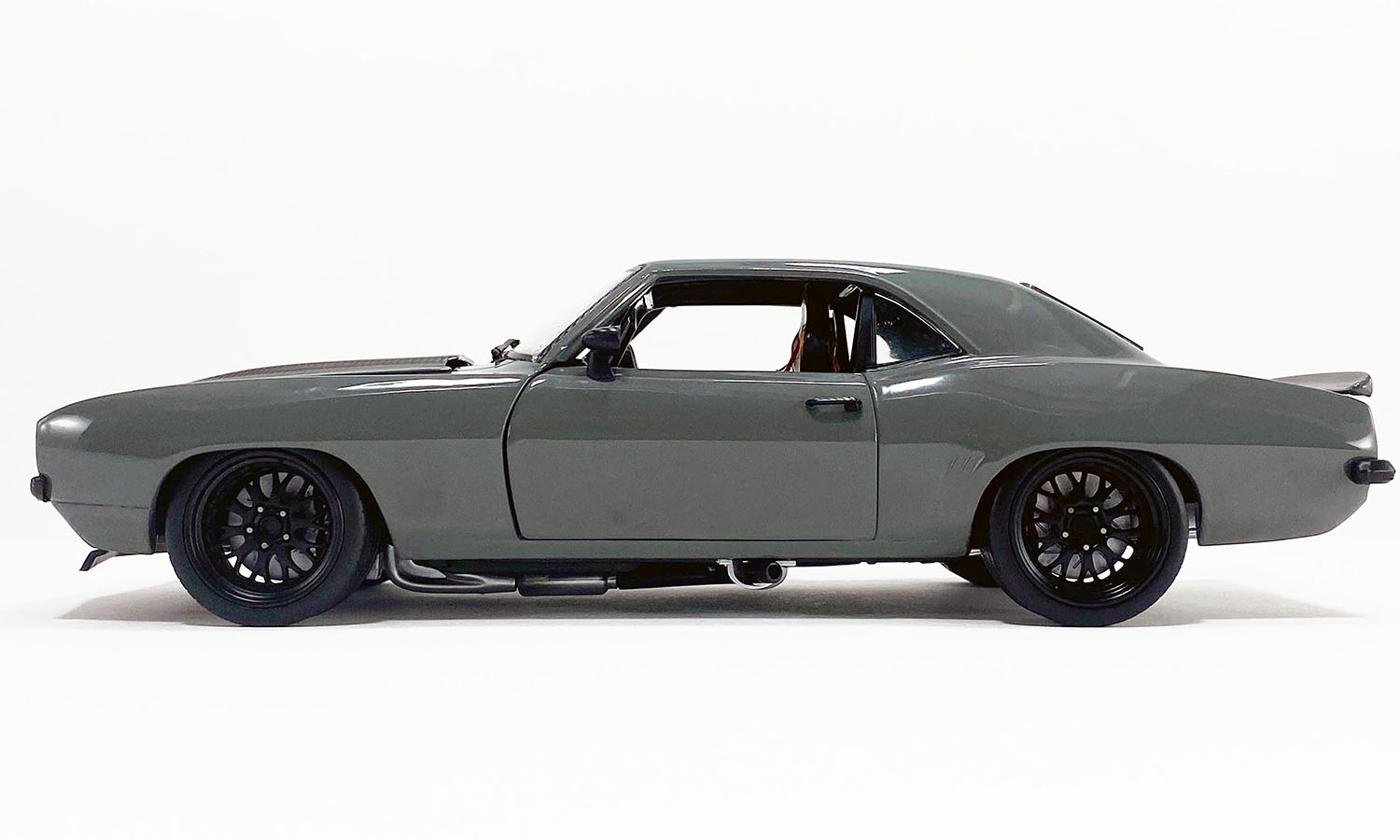 We've pulled out all the stops on this '69 Chevrolet Camaro Street Fighter that features carbon fiber detailing with forged wheels and race tires. Powered by the LS3 Corvette engine which is one of the most advanced performance engines ever produced by General Motors. This beast produces 430 horsepower with 424 lb. feet of torque with long tube headers and race exhaust. Fully detailed race interior with a full roll cage, with fabric seat belts and more! This one is truly like a Rhino, great strength, aggressive, and powerful! Place your Orders Today!