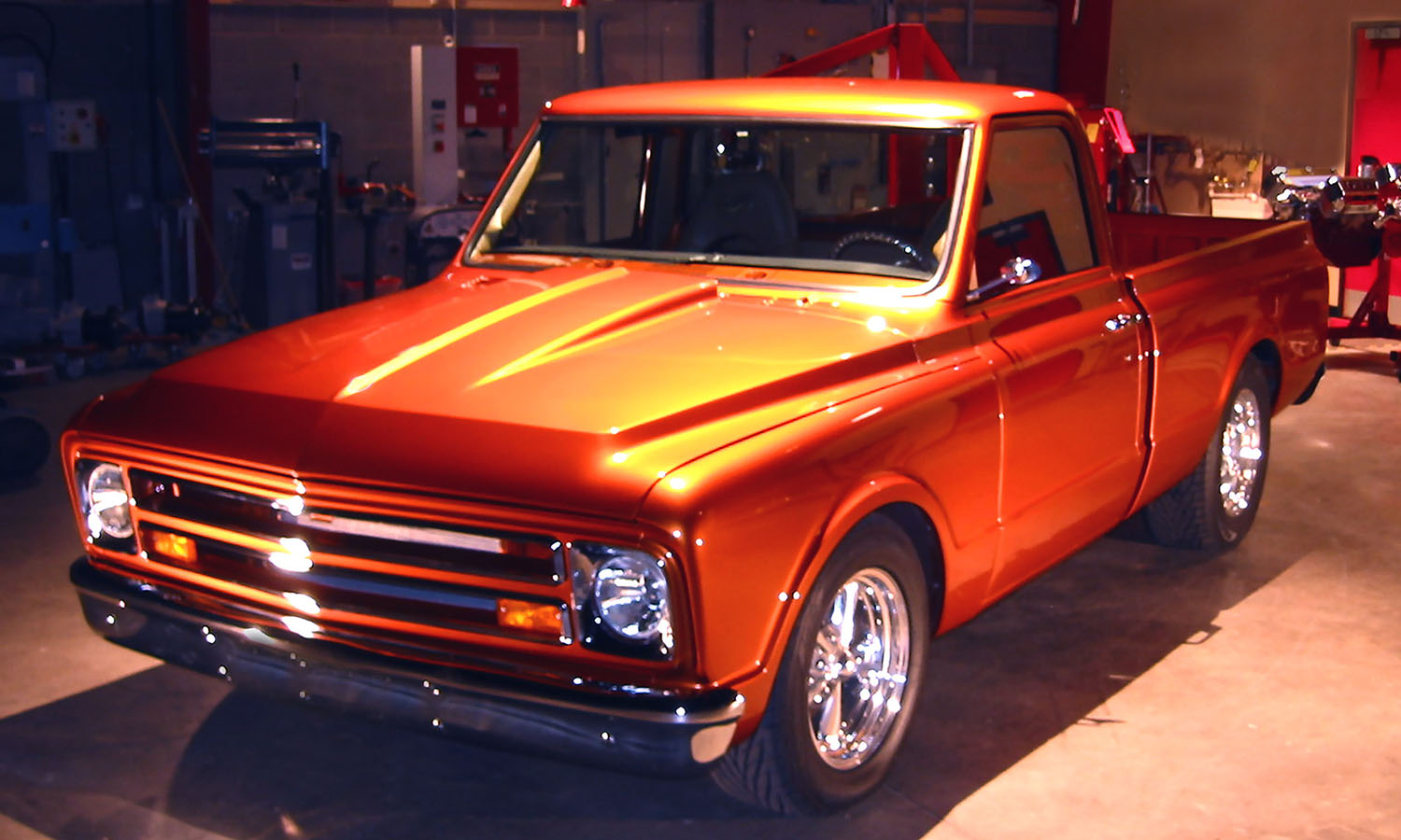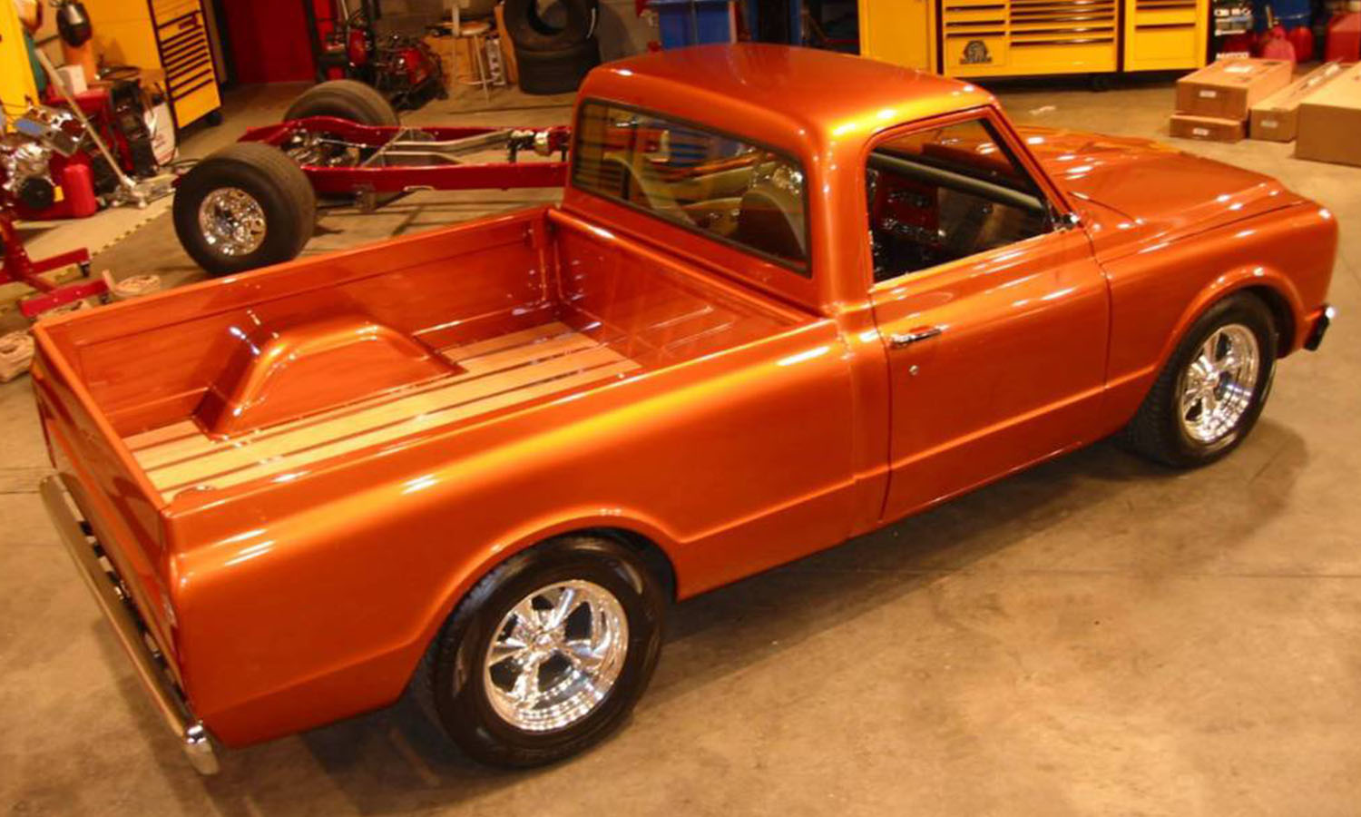 “One of the most famous and influential C10 trucks ever built has got to be Stacey David’s “COPPERHEAD”. Built by Stacey over several seasons on TV, Copperhead ignited the imagination of millions of gearheads to what they could build in their own garage. With a hot rod stance, custom interior and special metallic orange color, it had the look of a classic street cruiser. Under the hood however lurked the very first, pre-production 572 chevy crate engine to give the truck some serious bite. This combination created a classic triple threat of looks, handling, and power, and introduced the world to…….COPPERHEAD!
