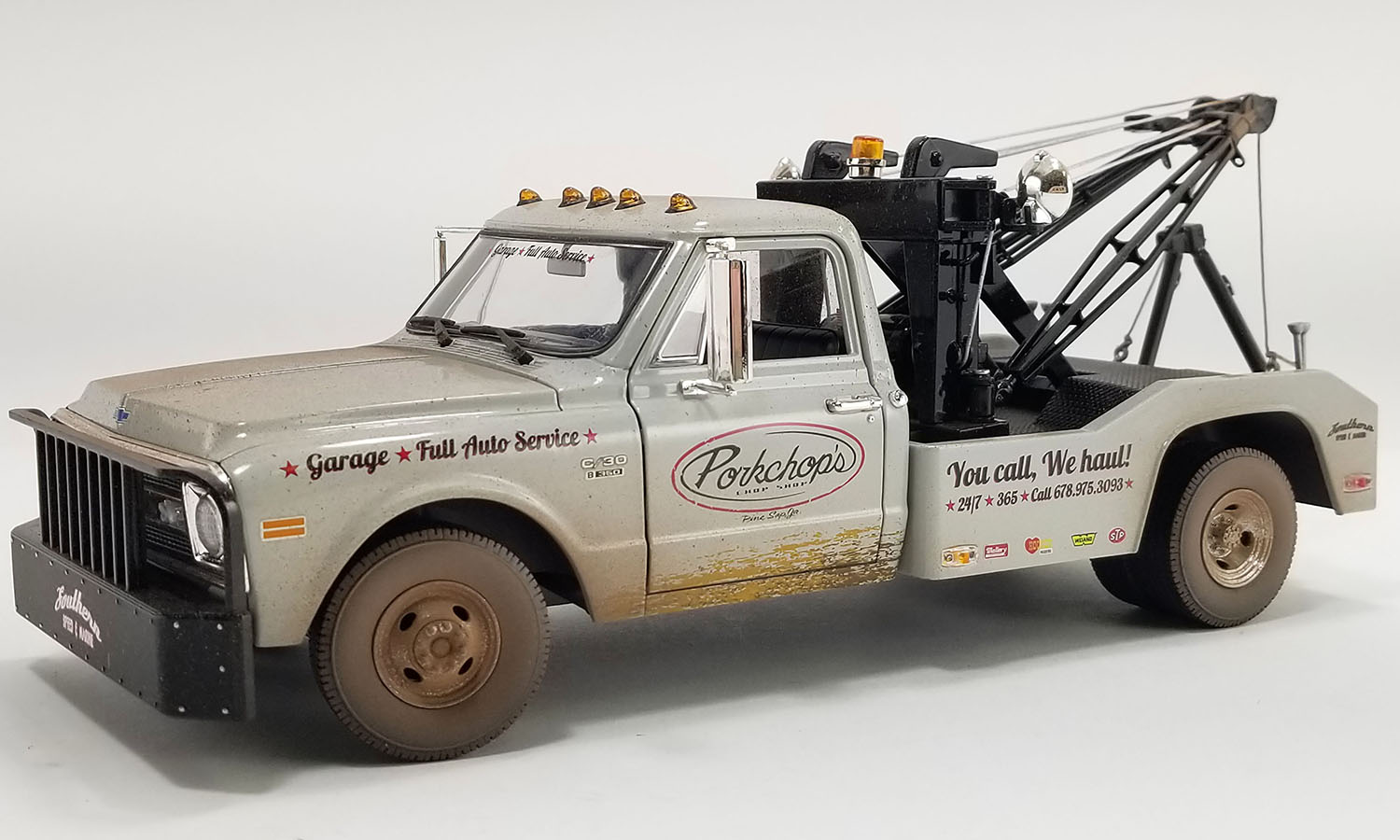 When we last left Pork Chop, he and Crazy Ben had just delivered some moonjuice to the fellas in Dawsonville in his wicked Cuda Somethin fishy. But there's more to the story... PC and Crazy Ben had made their getaway by dropping the hammer to skedaddel away from them law folks. Well, they wuz makin good time until a dog wandered onto the road and PC managed to dodge the pooch but ended up in the ditch. Crazy Ben said, "What in tarnation are we gonna do now?" PC replied, "We ain't gonna get out this here ditch without some help." "Use that dang celler phone and call Buddy to come hook us out of this mess." "Sides that, I cain't stand this stank no more!" Crazy Ben made the call to tell Buddy where they wuz and PC asked for phone. PC said, "Now be a good boy and get my wrecker fired up and come git us." "Now don't pull none of your shenanigans and get here in one piece." Being the good son, Buddy made the trip and they hooked up the Cuda to make it back to Pine Sap. Crazy Ben said, "I'm sure glad you done picked us up Buddy as I was gonna lose my supper from the stank of that Cuda!" PC replied, "Don't get too happy as we is gonna have to fummergate that thang when we get home."
