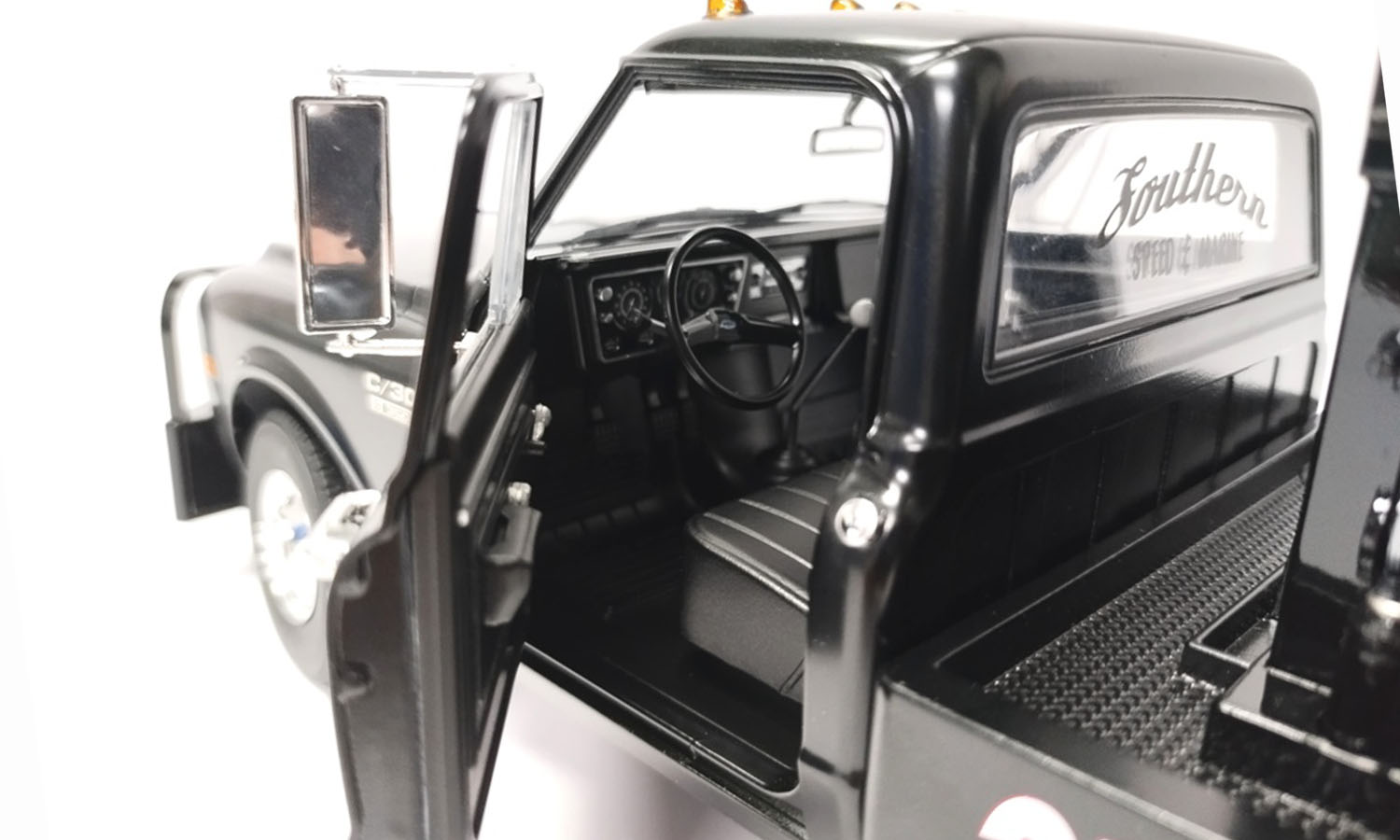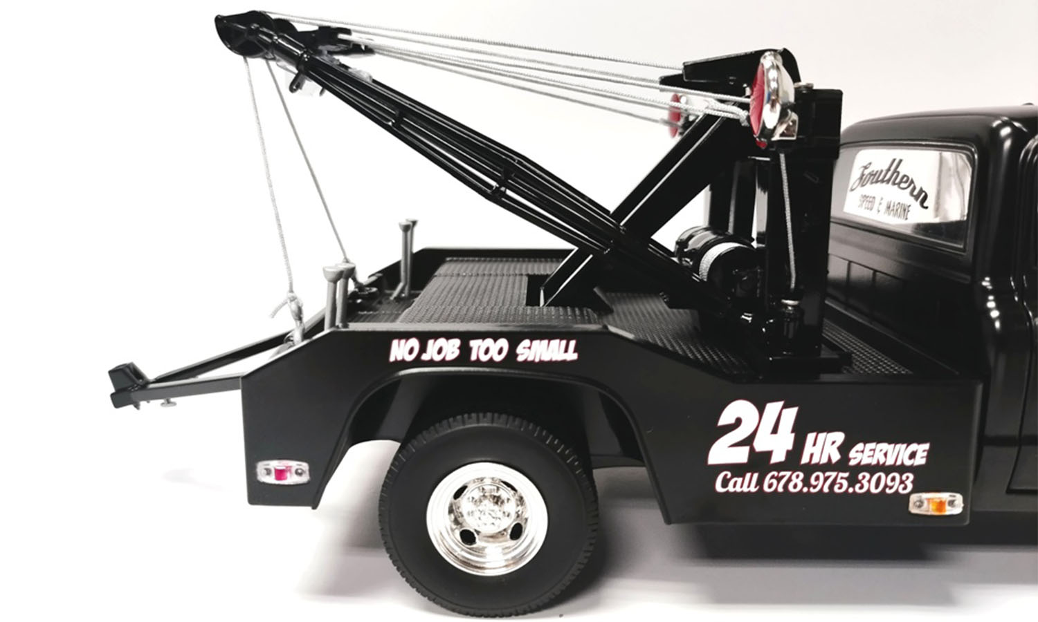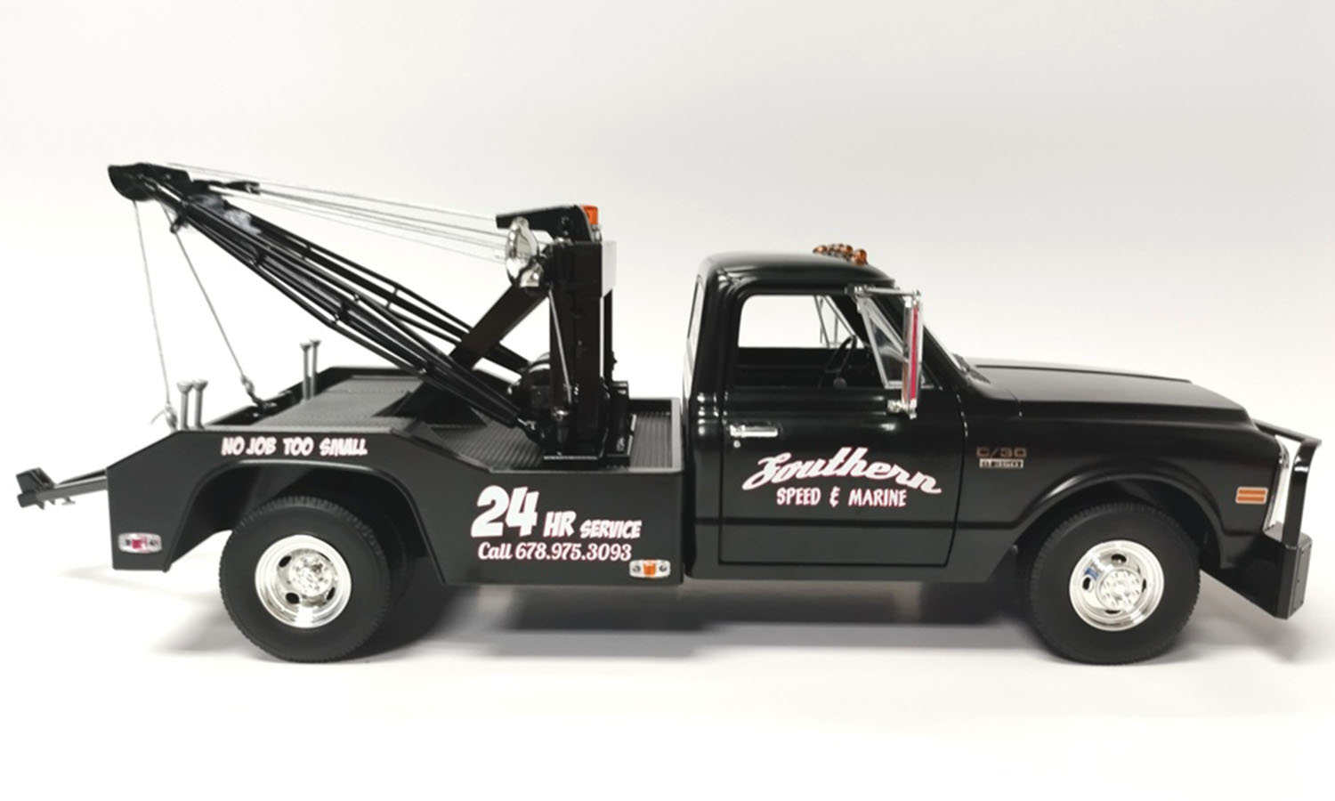 ACME has partnered with Greenlight to bring you this exclusive 1969 Chevrolet C-30 Wrecker Southern Speed & Marine decked out in glossy black paint. This beefy C-30 features dual rear tires, chrome wheels, twin boom, wheel lift, and so much more!