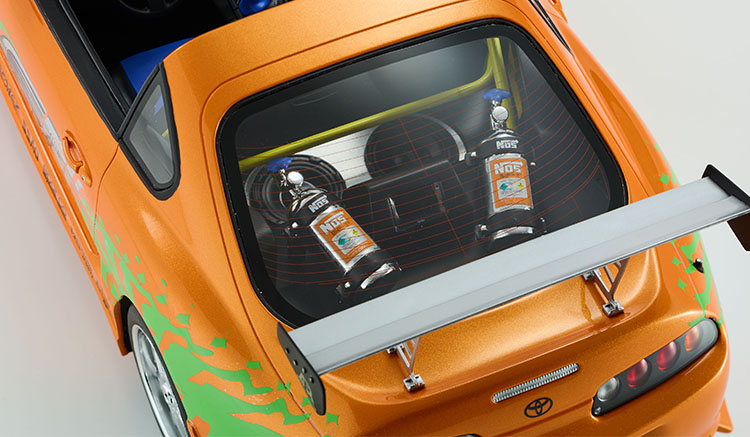 In the first film of The Fast and the Furious, Brian O'Conner rebuilds a wrecked red Toyota Supra at Dom’s garage. This car plays a crucial role in earning Dominic Toretto’s trust and becoming part of his crew. Considered a pioneer of the now-established "JDM" custom style, the body wrapped in vinyl graphics became a staple custom in the subsequent sports compact car (sports commode) boom, influencing the world. For the model's creation, we traveled to Los Angeles to conduct on-site vehicle research. We scanned and photographed actual movie cars and hero cars used in films to create the data.