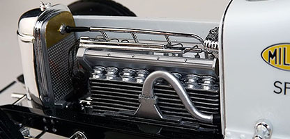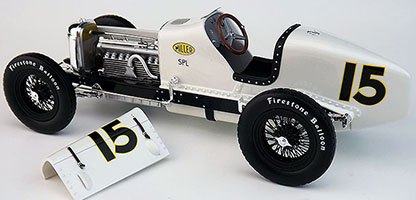 In 1:18 scale by Replicarz, this is the 1926 Miller driven to vidtory at the Indy 500 by Frank Lockhart.. This impressive resin cast model is sure to fill a void in your Indy 500 collection. Removable hood to show the fully detailed engine area. Superb cock pit detail with glass faced gauges and all pedals, shifters, and controls. Finished off with a beatiful high luster paint finish and authentic race day graphics. Replicarz Indy, the difference is in the details.
