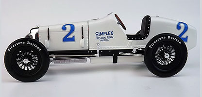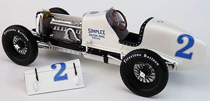 In 1:18 scale by Replicarz, this is the 1929 Miller driven to vidtory at the Indy 500 by Ray Keech. This impressive resin cast model is sure to fill a void in your Indy 500 collection. Removable hood to show the fully detailed engine area. Superb cock pit detail with glass faced gauges and all pedals, shifters, and controls. Finished off with a beautiful high luster paint finish and authentic race day graphics. Replicarz Indy, the difference is in the details.