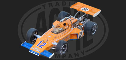 Another great release coming in the 1:18 scale Replicarz Exclusive Indy series, this is the 1972 McLaren as driven at the Indy 500 by Peter Revson. Die cast metal body, removable bonnet to show the well detailed Offy engine and all electronics/wiring, authentic cockpit with all controls and glass faced gauges. Top it off with a high luster paint finish and crisp race day decoration. This one will surely fill a void in your Indy collection. Very limited edition (TBA) Scheduled for delivery in the 4th quarter 2012.