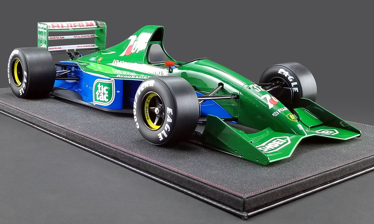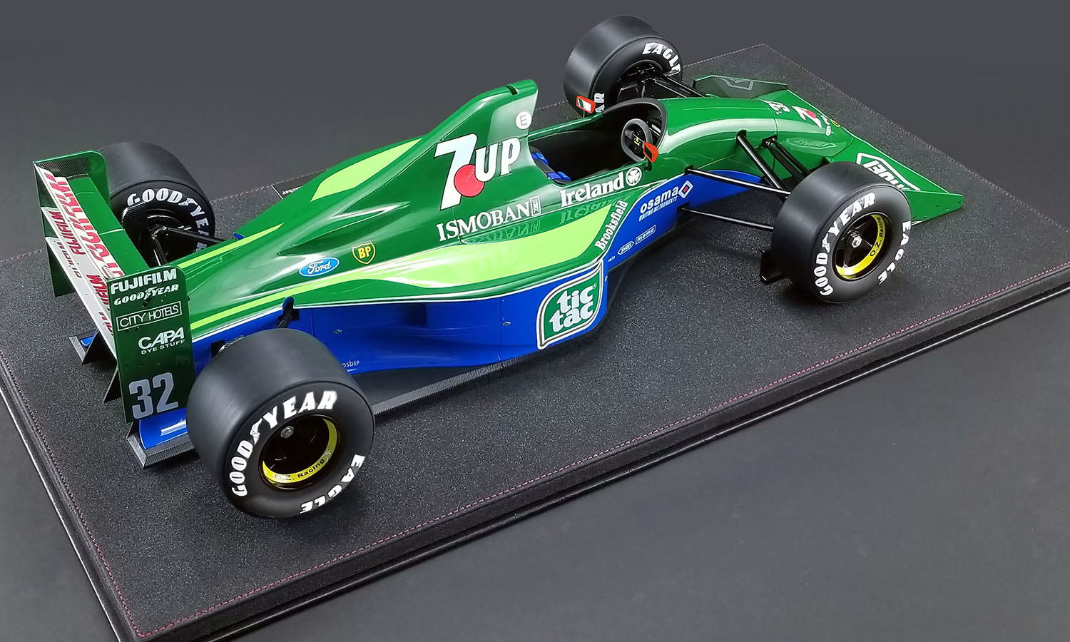 Real Art Replicas is pleased to offer you this hand crafted resin model of what many consider to be the most beautiful Formula 1 car ever raced, the Jordan 191. This particular model is the #32 Jordan 191 - Team 7UP Formula 1 car that Michael Schumacher made his Formula 1 debut in at the 1991 Belgian Grand Prix at Spa!