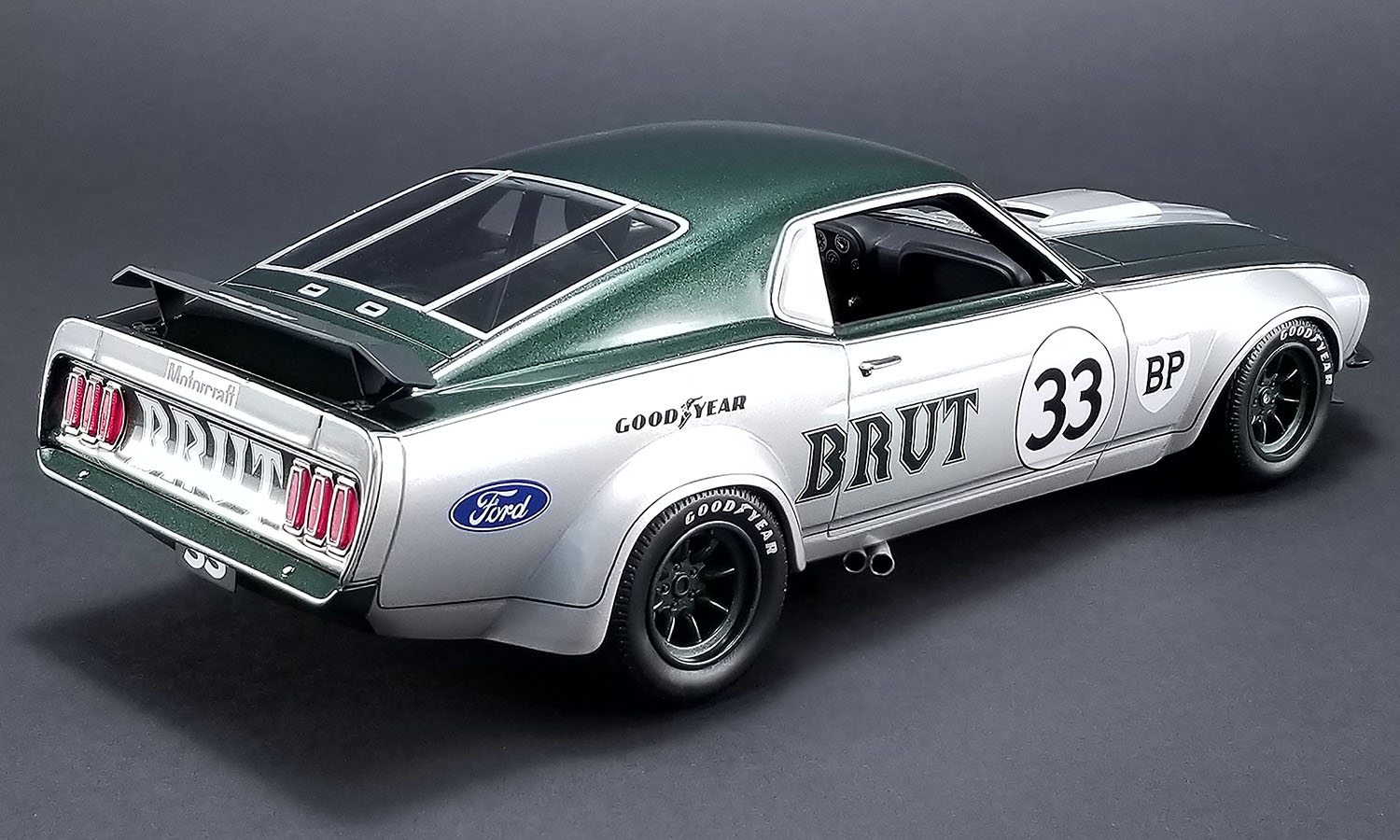 Real Art Replicas is pleased to announce their first release in 1:18 scale! This first release will be Allan Moffat’s famous #33 Brut 1969 Trans Am Boss 302 Mustang. To compliment the fully detailed race interior and the beautifully applied Brut paint scheme, RAR has also captured the detailed body lines that made this one of the most famous Trans Am racers. Each model will be individually serialized and come with a certificate of authenticity personally signed by Allan Moffat. Place your pre orders now as this one will sell out quickly!